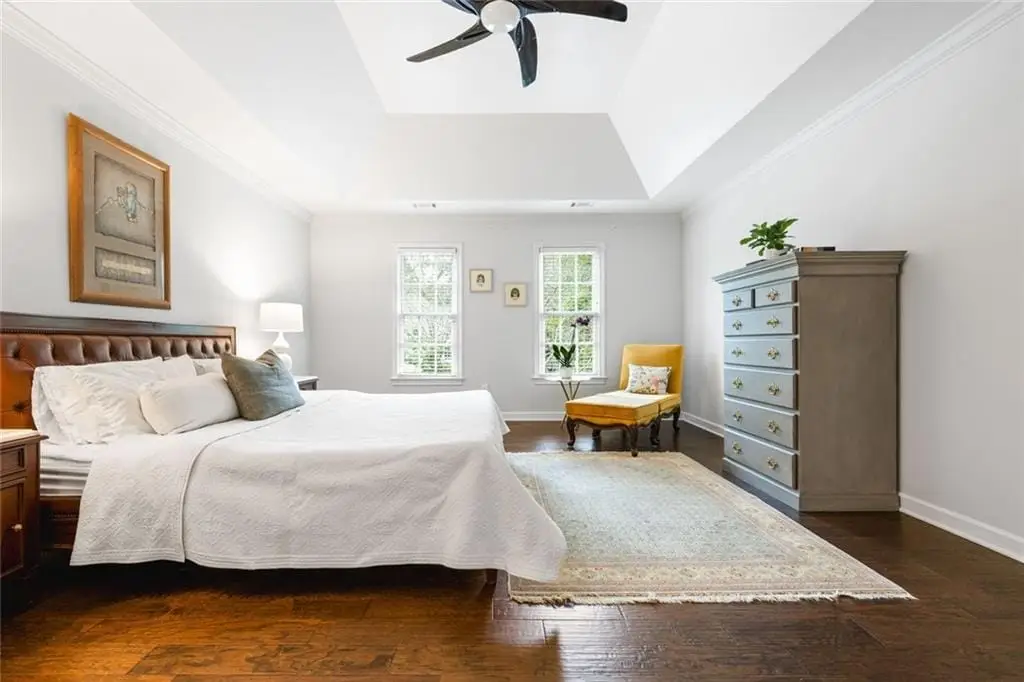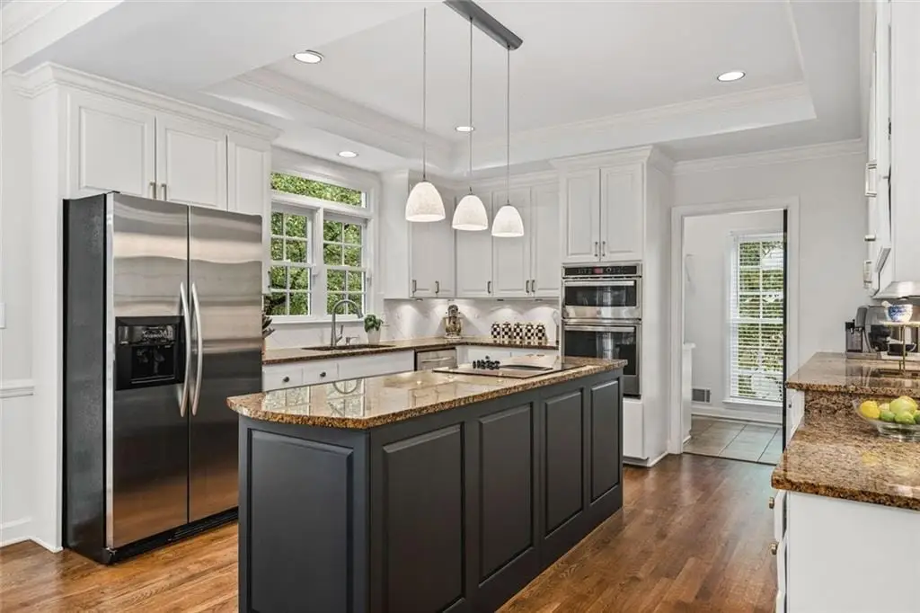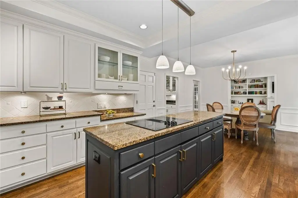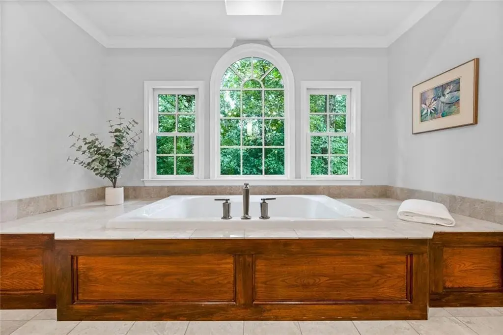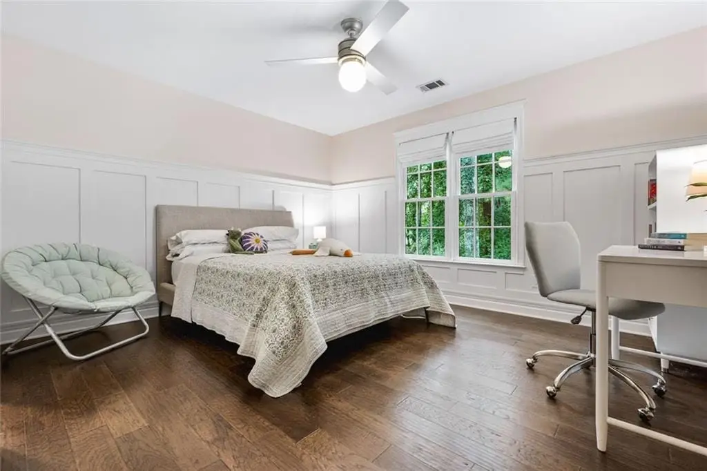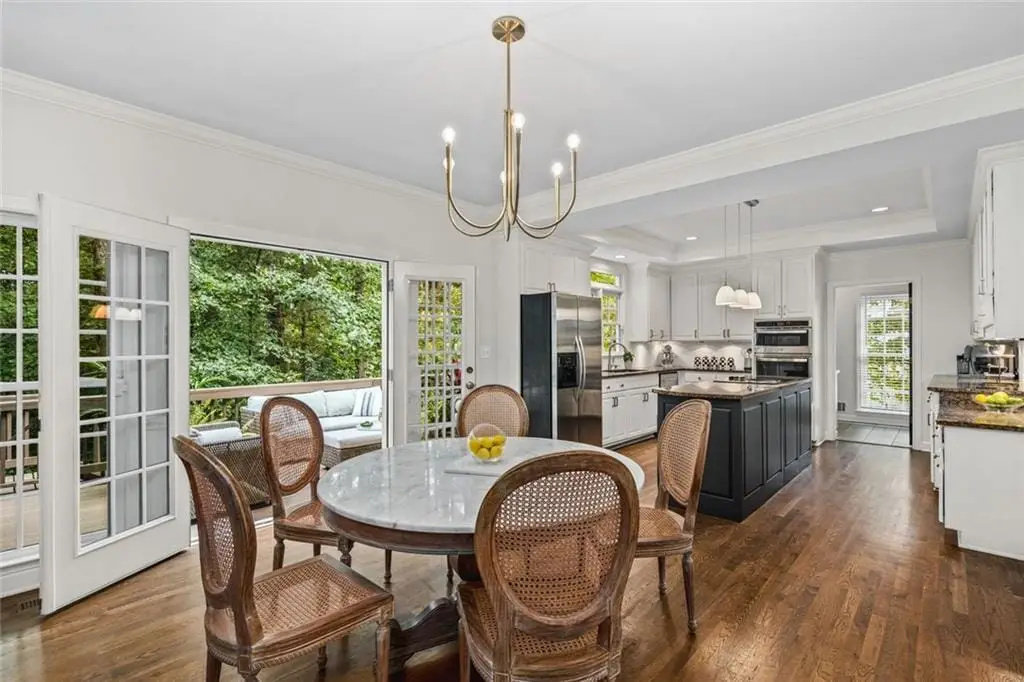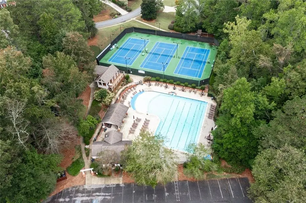 Exceptional North-East Facing Home in Hampton Woods - East Cobb's Premier Swim & Tennis Community Discover this beautifully maintained hardcoat stucco home in Hampton Woods, one of East Cobbs most beloved neighborhoods known for its active swim and tennis amenities, friendly neighbors, and top-rated schools. Elegant & Inviting Living Spaces- Step into a grand two-story foyer that opens to a breathtaking great room with soaring cathedral ceilings, custom built-in bookshelves and cabinetry, a cozy fireplace, and dramatic two-story window that bathe the space in natural light and offer tranquil views of the trees beyond. Designed for Entertaining, The formal dining room seats up to 12 guests with ease, while a separate formal living area adds sophistication to your entry. The open floorplan flows seamlessly from the family room to the breakfast area and kitchen, connected by elegant French doors. The kitchen features white cabinetry, granite countertops, and new built-in oven and microwave. French doors from the breakfast area lead to a spacious deck - perfect for hosting gatherings or enjoying quiet mornings outdoors. Private Owners Retreat- The owner’s suite is a true sanctuary, offering a large bedroom with a separate sitting room or office drenched in natural light. The resort-style bathroom includes a soaking tub, separate shower, dual vanities, and two toilets for added convenience. Generously sized secondary bedrooms feature updated bathrooms and ample closet space, ideal for family or guests. Large bedroom and bathroom on main for guests. Versatile finished terrace level offers a large open space perfect for a media or family room, complete with built-in cabinetry. Additional rooms include a recreation/craft room, billiard room, and a private bedroom with full bath - ideal for guests or multi-generational living. The perfect Outdoor Oasis: Step outside to a level backyard with a grassy play area, stone firepit, and a charming playhouse - a peaceful retreat for all ages. This Prime Location of Hampton Woods known for its community events, welcoming atmosphere, and proximity to nature trails, shopping, dining, and major highways including GA-400, I-75, and I-285. Minutes from Sandy Springs, Roswell, and located in some of Georgia’s top-ranked schools, this home offers the perfect blend of luxury, lifestyle, and location.(P.S. There is a secret storage room accessed from the mirrored closet in the terrace level bedroom-not to be missed!)