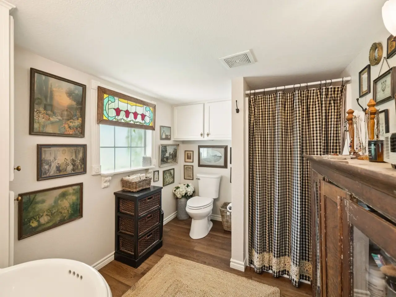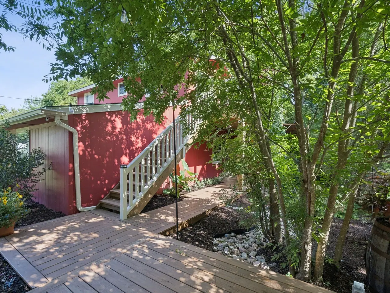 Welcome to Honey Creek Farm, a hidden gem with two homes nestled on 10+ unrestricted acres near historic downtown McKinney, the new HEB and Signature Kroger. This ag exempt, immaculate estate is home to award-winning honeybees who won first place at the State Fair of TX in 22 and 24. (New owners will be provided options for keeping the exemption.) A magical retreat with towering pecan and oak trees, a year-round creek, wooden bridge, and stone seating area perfect for peaceful strolls and quiet reflection. Rich with history and truly unique in Collin County, it includes meandering trails that wind through the woods beside the creek, a perfect escape. The main house is meticulously maintained with two bedrooms, two living areas, a full bath, 2-car garage, RV hookup, quaint garden shed, large deck and patio, new roof, plus brand new flooring and fresh paint throughout, filled with natural light and charming character. The new red barn with AC has tons of storage, covered RV space, and a carefully curated English cottage above-a storybook retreat perfect as guest quarters, mother-in-law suite, or short-term rental. Its beautifully landscaped with a fire pit creating a cozy spot for family and friends. The scenic build site is ready for your dream home or boutique venue, with a winding driveway, water, electric, new septic and extra parking for guests already in place. The property is partially fenced and suited for horses or other farm friends. A rare opportunity to own this pristine countryside in desirable McKinney-the possibilities are endless!