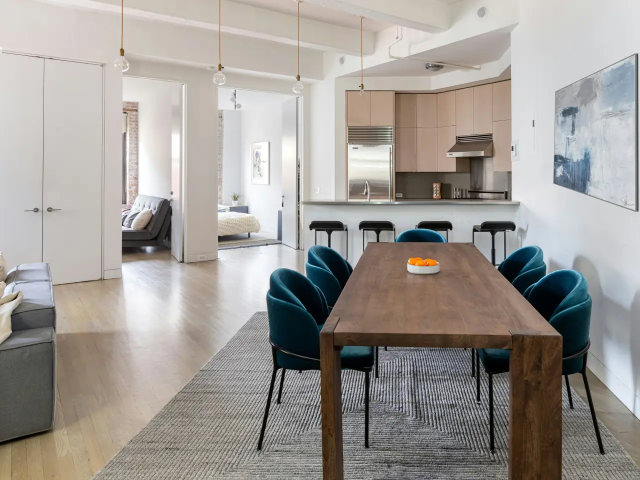 Truly unique in detail and design, this approximately 1,200 square foot two bedroom apartment blends all the charm of the West Village with your downtown TriBeCa loft. THE APARTMENT; - 11-foot beamed ceilings - Wood-burning fireplace - Loaded, renovated kitchen with tons of cabinets, stainless steal counters and top of the line appliances like a Viking stove with vented hood, Sub-Zero refrigerator and Miele dishwasher - Grey tinted oak floors - Exposed brick throughout - Expansive living room with space for a 8-10 person dining table - Numerous floor to ceiling closets - Two tall north facing bedroom windows - Renovated bathroom with a frameless walk-in glass shower, attached overhead shower and handheld sprayer, built-in bench and a large separate soaking tub. - Separate laundry and storage area with wine fridge THE BUILDING: - Impeccable, boutique condo building with elevator - Only three lofts per floor - Common roof deck - Full time super (lives nearby) - Extra Storage Cage available (for a separate fee) THE NEIGHBORHOOD: - The crossroads of the West Village and the Meatpacking District - Moments to Highline Park, The Standard Grill and Beer Garden, Chelsea Market and more - Close to A/C/E subway lines