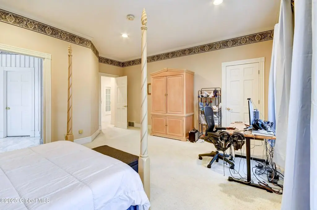 Step into this elegant & luxurious custom home set on a lovely 2.19-acre lot with beautiful mountain views. Located in the prestigious Sage Estates Gated Community in Loudonville. Property features a three-car garage. French doors open to a classic columned veranda. Upon entering, you'll be welcomed by a grand foyer with a magnificent staircase, marble floors, & a stunning crystal chandelier. The spacious kitchen is perfect for family gatherings & with over 8,000 sq ft of living space, it's an entertainer's dream. Main level also offers a primary suite, dining room, living rooms & offices while the upper level includes three additional primary suites with balconies. The finished basement boasts a home theater, gym, bedroom, bonus rooms & two full bathrooms. HOA covers gate, pond, tennis courts. Must see!