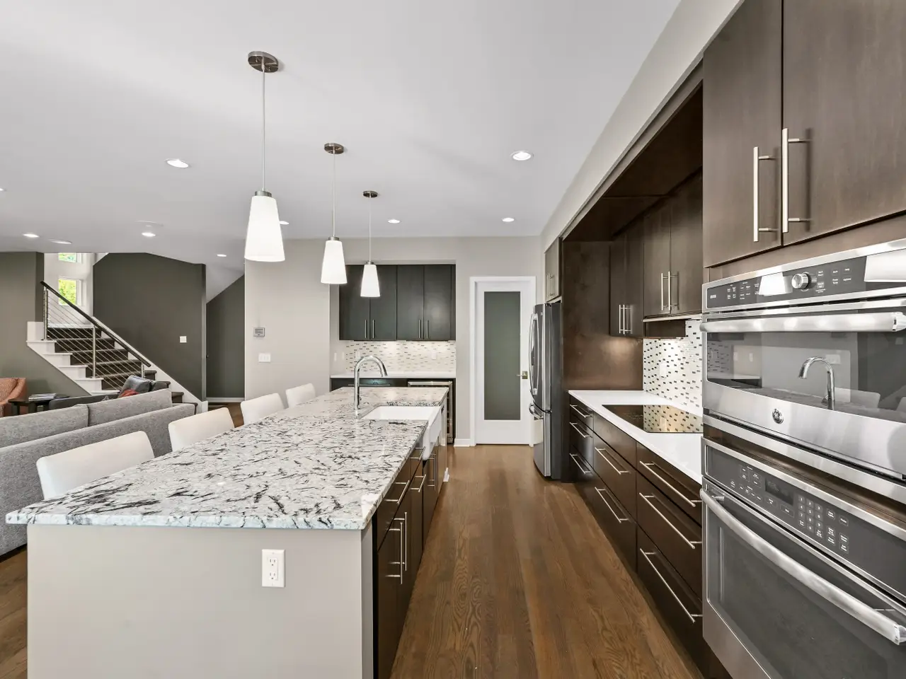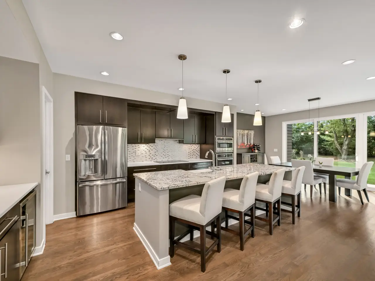 Stunning architectural jewel boasts quality, clean lines and sleek award winning design. Thoughtful details, state of the art technology, open floor plan and incredible natural light abound in this custom home. Set on a 1+ acre park like setting and nestled on a quiet cul de sac, this is a peaceful private retreat. Unique features include 2nd floor laundry, 4 car garage that can accommodate car lifts, luxury spa bath in primary with steam shower and amazing walk-in closet. The lower level features a flexible rec space with wet bar and beverage station, full bath and exercise area. Sprawling backyard includes a large fenced garden, mature landscape and spectacular covered deck. A treasure you don't want to miss. A stones throw from Ozaukee Country Club, schools, 1-43 and all southeast Mequon has to offer! A hidden gem!