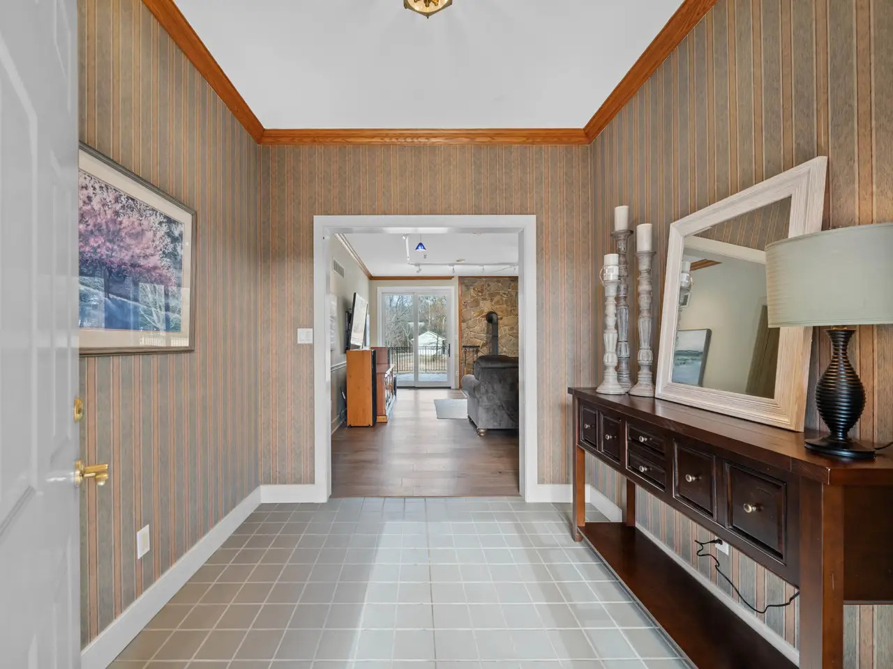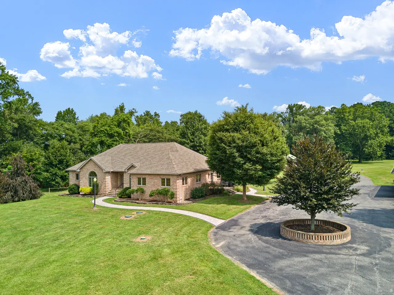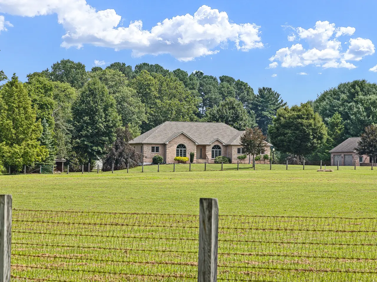 HUGH PRICE REDUCTION!!! Welcome to Windmere Farm – a stunning country estate situated on 14.21 acres, recently enhanced with over $135,000 in updates. This custom, all-brick ranch blends comfortable living with casual luxury, offering features that go well beyond the ordinary. As you enter the spacious foyer, your eye is immediately drawn to the family room and the expansive views beyond, visible through two tall sliders leading to the patio and backyard. To the right, the open dining area offers another slider for seamless indoor-outdoor living. The chef’s kitchen is a true showpiece, equipped with: 6-burner Viking gas range with two ovens (one gas, one convection); Sub-Zero refrigerator/freezer; two Bosch dishwashers; under-counter ice maker; and custom hickory cabinetry with soft-close drawers and under-cabinet lighting. Just off the family room is a charming library, featuring custom cherry built-ins and a large arched window. It can be closed off with pocket doors for privacy. Beyond the library, glass French doors open to a large flex room—ideal for a second office, playroom, or studio—which also connects to the kitchen. On the opposite wing, a pocket door leads to the bedroom quarters. The primary suite boasts a triple arched window, a spacious en-suite bath with updated fixtures and lighting, and a large walk-in closet. Two additional bedrooms share a beautifully updated hall bath. The fully finished lower level—with walk-out access to the hot tub - features new LVP flooring, a private office space, and a mini-split system for year-round comfort. Step outside the family room to a large patio with custom wrought iron railings and Cambridge pavers. Across from the kitchen is the four-car, all-brick garage, complete with: tile flooring; EV charging station; wall-mounted vacuum system; gas heat and full insulation. For additional space, a 42' x 60' insulated pole barn with heat, A/C, water, and electric sits nearby. The property also includes: fenced pasture with run-in shed (currently home to Teddi, the llama); backyard cedar woodshed; heated/cooled kennel with auto-fill water station and two garage bays; and 8 water hydrants throughout the property. Recent updates include: roof (5 years old); Marvin Ultimate windows & sliders (new); engineered hardwood flooring; full interior repaint (2024); septic inspection & repairs (2024). Windmere Farm offers peace and quiet, with horses as your neighbors, while being just minutes from restaurants, shops, and all that Middletown has to offer. The home is not visible from the street—showings are by appointment only. Call Renée with any questions.