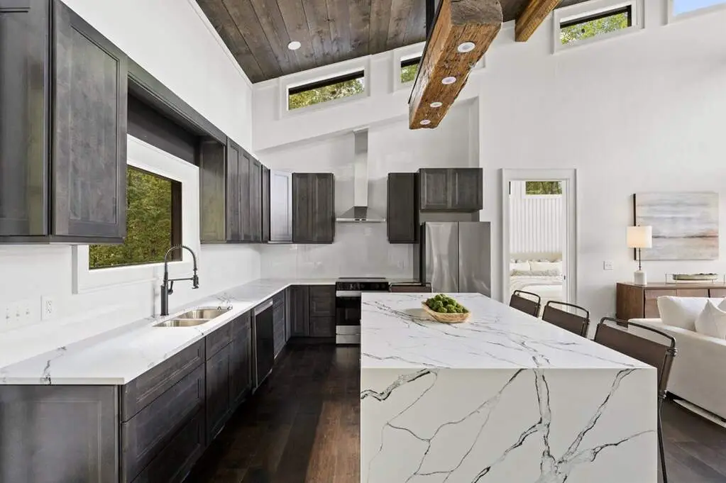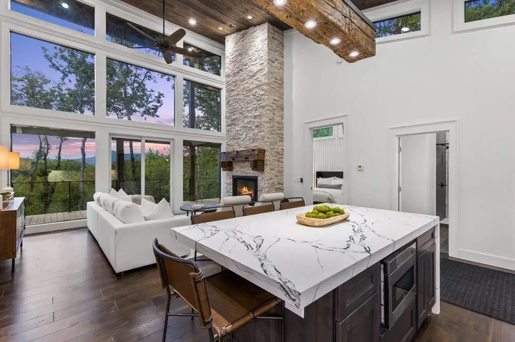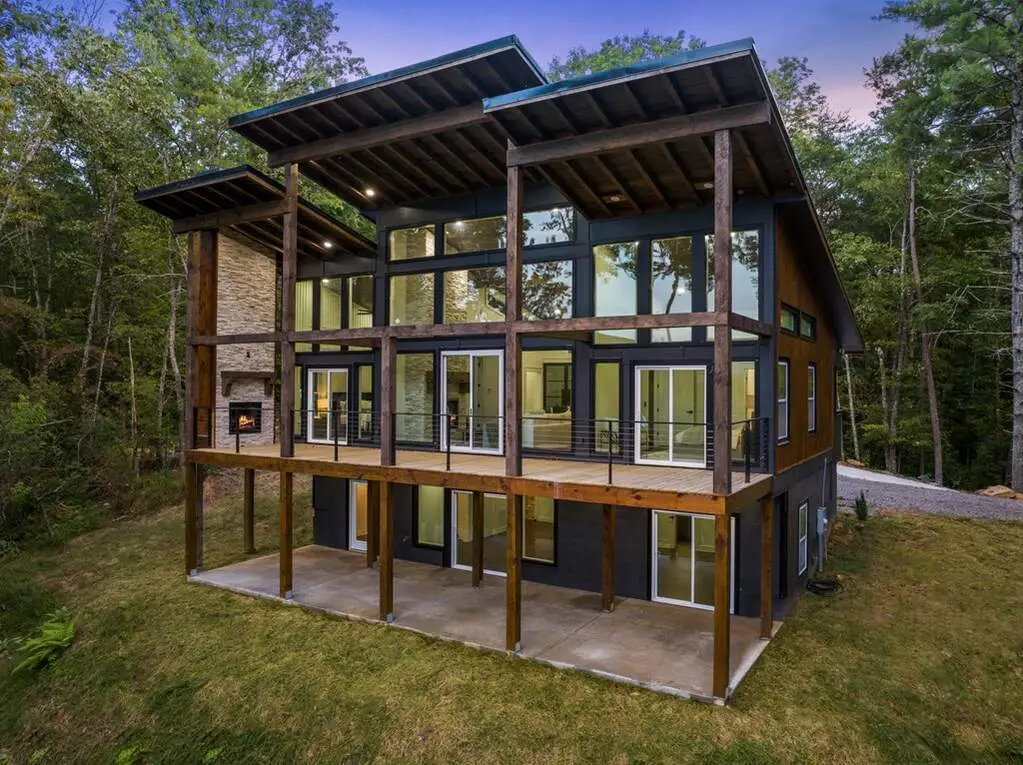 Modern Mountain Luxury Home with Panoramic Long-Range Views This 4-bedroom, 3-bath contemporary retreat blends modern mountain living with high-end luxury and investment potential. Perched high to capture breathtaking long-range mountain views, it offers style, comfort, and flexibility for vacation rental, short-term rental, or full-time residence. The open-concept design showcases a striking mix of metal, steel, and concrete accents, soaring ceilings, and expansive walls of glass that flood the interiors with natural light while framing the scenery. The gourmet chef's kitchen features high-end appliances, custom cabinetry, and dramatic granite waterfall countertops designed for both everyday cooking and entertaining. A luxury wine closet stores and displays your collection with elegance. Two oversized levels of outdoor decks extend the living space, creating seamless indoor-outdoor flow for alfresco dining, entertaining, or relaxing while taking in the views. Primary and guest suites offer privacy and spa-like baths. Located just minutes from Blue Ridge, Ellijay, and the Ocoee River, this home combines architectural excellence, panoramic vistas, and strong rental potential into one turn-key modern mountain retreat perfectly suited for discerning buyers looking for a statement property in the North Georgia mountains.