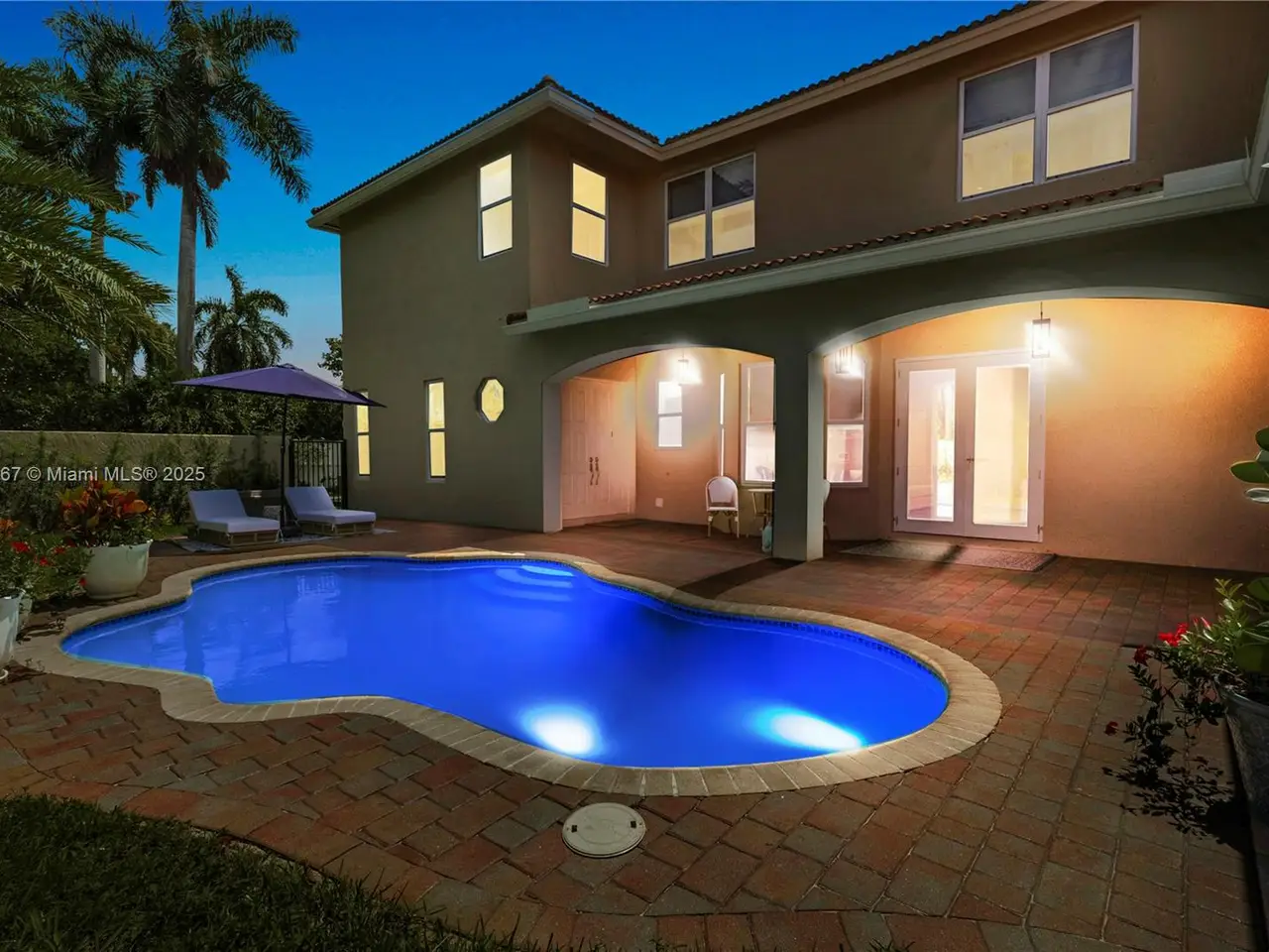 Discover South Florida living at its finest in your dream home! One of the few oversized lots in the sought-after community of Biltmore Estates at Monarch Lake in Miramar. Perfectly designed for entertaining and everyday ease and comfort.The outdoors is designed for relaxation, surrounded by lush tropical landscaping, pool area, and a large yard with a private back patio. The meticulously designed kitchen features quartz countertops, waterfall island, wine fridge and custom designed coffee station. Custom woodwork and built-ins throughout make this home a one-of-a-kind. Courtyard features private guest/in-laws quarters. The primary ensuite includes an added room perfect for office, nursery, or 5th bedroom. Impact windows and doors throughout. This home is both inviting and sophisticated.