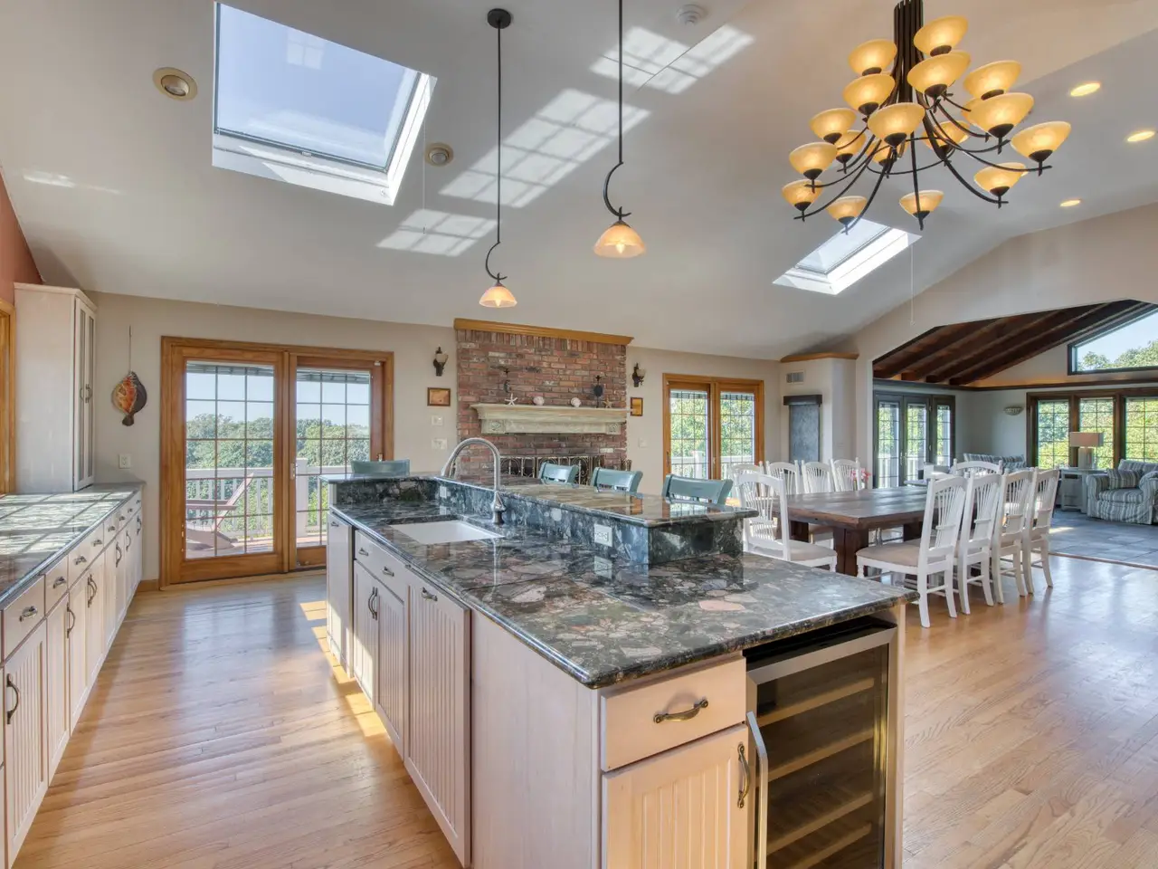 Nestled on a shy three quarters of an acre, this five bedroom, four and a half bath home offers the perfect balance of luxury and comfortable living. This three-story property features over 4,000 square feet of thoughtfully designed space, including two levels of wrap-around decks. The kitchen includes expansive counter space, a large island with room for five, stainless steel appliances, and a generous walk-in pantry. The adjacent dining room, with a center fireplace, comfortably seats ten and leads to a vaulted ceiling living room, large enough to host two separate lounging areas. French glass doors span the length of the floor and open to the upper deck, where you can enjoy Montauk sunsets. The layout of the bedroom floor ensures privacy and comfort for everyone. Two generously proportioned primary suites, each with access to the lower deck, have custom walk-in closets and beautifully appointed baths. Three additional bedrooms are considerably sized and can accommodate queen, king or bunk beds. All are bright and share a large bath. Bonus rooms on the entry floor offer versatility for multiple design possibilities. With an additional full bath and a good deal of closet space, create a gym/yoga space, wine cellar or home office. Currently configured as a den, office and additional sleeping quarters, this space can easily be adapted to suit your needs. Survey with pool envelope, winter glimpses of the water, and a strong rental history complete this offering!