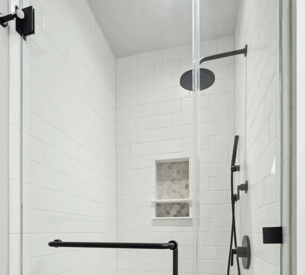 Custom Sapele wood fireplace mantel with ceramic tile surround