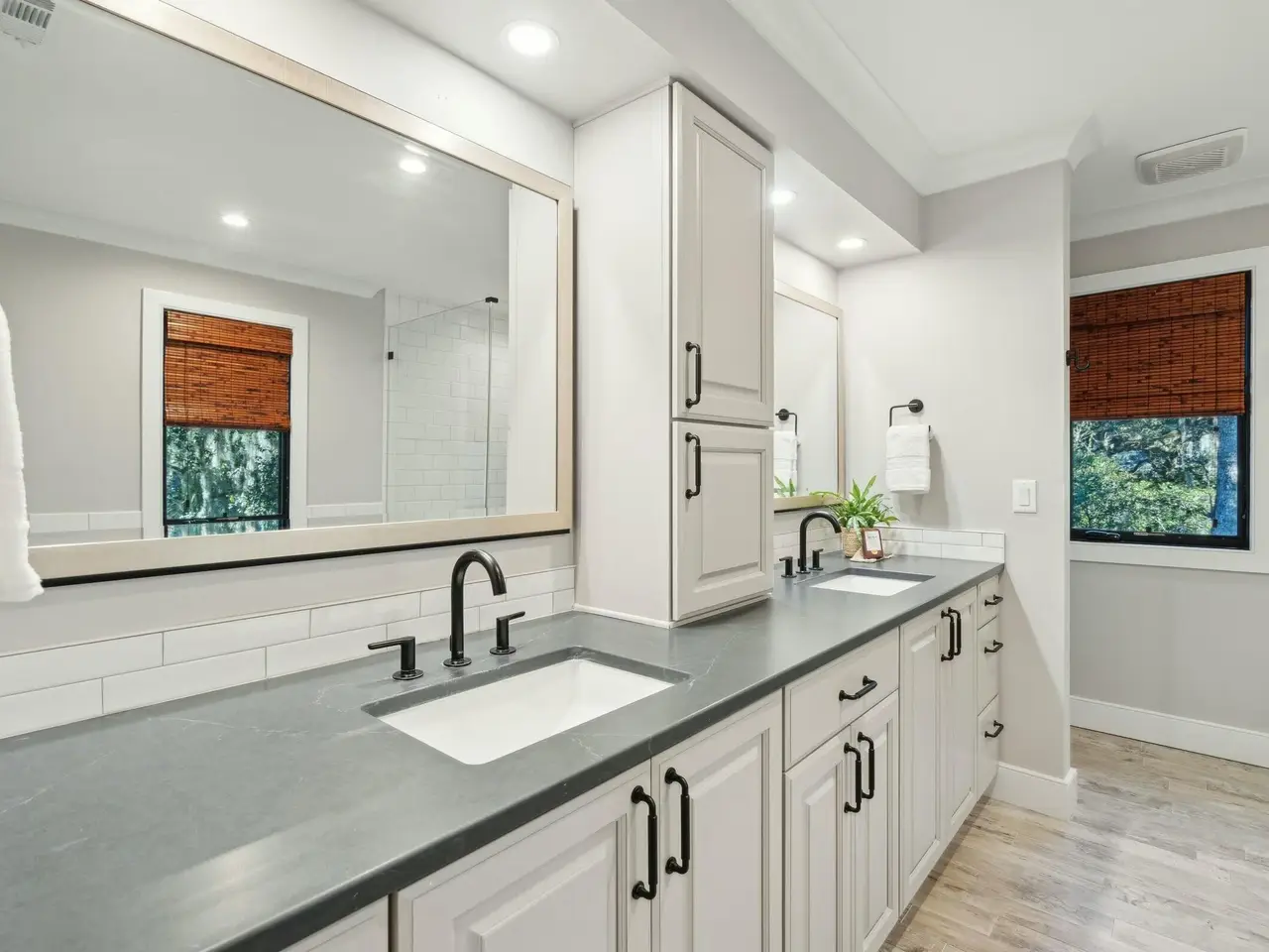 Architecturally designed and renovated home by Architect, Stephen A. Russell. Built by Avery Garrison, Caravel Contracting. This home is truly the hidden gem of Wharf Indigo Place. The Craftsman cottage design elements of styling and details belie the expansive sense of interior spaces. Judicious wall sizes and placements define various rooms yet promote a spacious feel from all interior areas. Covered front entry with arch top front door to foyer, coat closet and powder room. Family room with custom designed Sapele wood fireplace mantel with exquisite ceramic tile surround and custom Sapele cooktop exhaust hood enclosure with gas logs, dining room, gourmet kitchen with all new Diamond brand cabinetry, quartz countertops and GE Cafe appliances, including new gas cooktop, wine cooler andice machine, counter backsplashes are delicate ceramic tile in a herringbone pattern, Butler's pantry complete with refrigerator, base cabinets with quartz countertop, glass door wall cabinets and microwave. Living room opens to the outside deck with beautifully landscaped yard and privacy fencing, and side porch with custom wooden privacy shutters. Three spacious bedrooms and two bathrooms upstairs. Separate staircase to access private fourth bedroom/guest room with full bathroom. Upstairs primary bathroom has soaking tub, separate shower, and double vanities with quartz countertops. Additional bathroom has soaking tub and two separate sinks with quartz countertops. Both staircases are custom designed, oiled Sapele wood with decorative metal balusters. All new architectural fiberglass shingle roofing, new gutters, new HVAC and new spilt system in guest suite, all new insulated windows and sliding glass doors by Jeld-Wen, all new plumbing pipes, Rinnai tankless water heater. 2-car garage with guest parking. Please see attached Additional Features for specifications. Please see Agent's notes regarding information on membership for Creekside Tennis and Swim Club. Please park in driveway not on cul de sac.