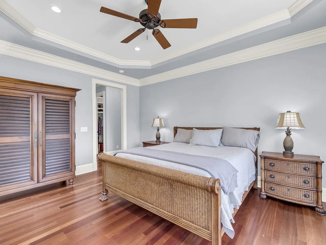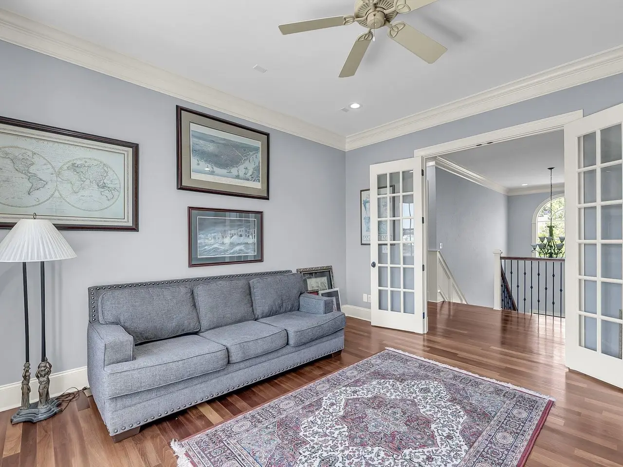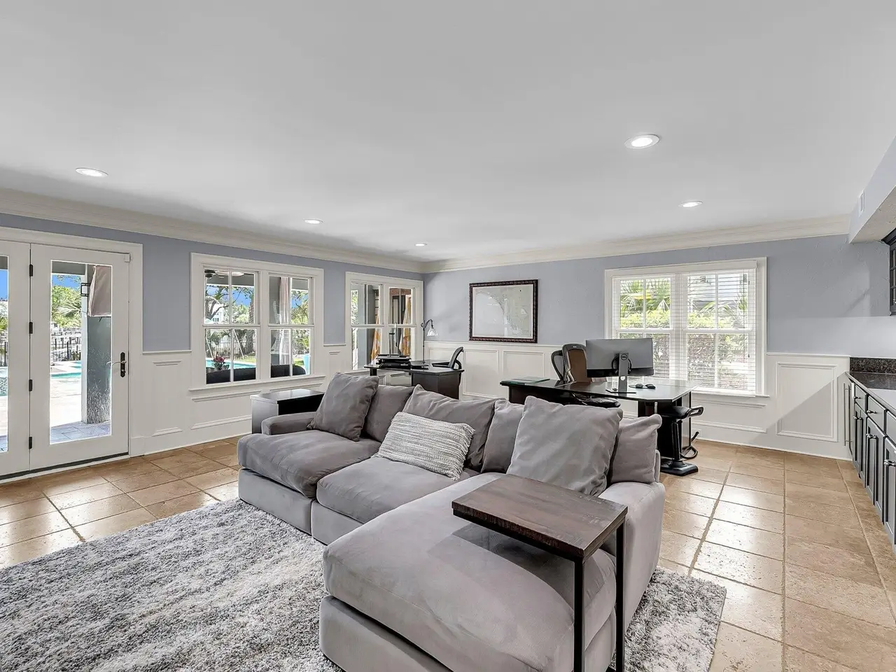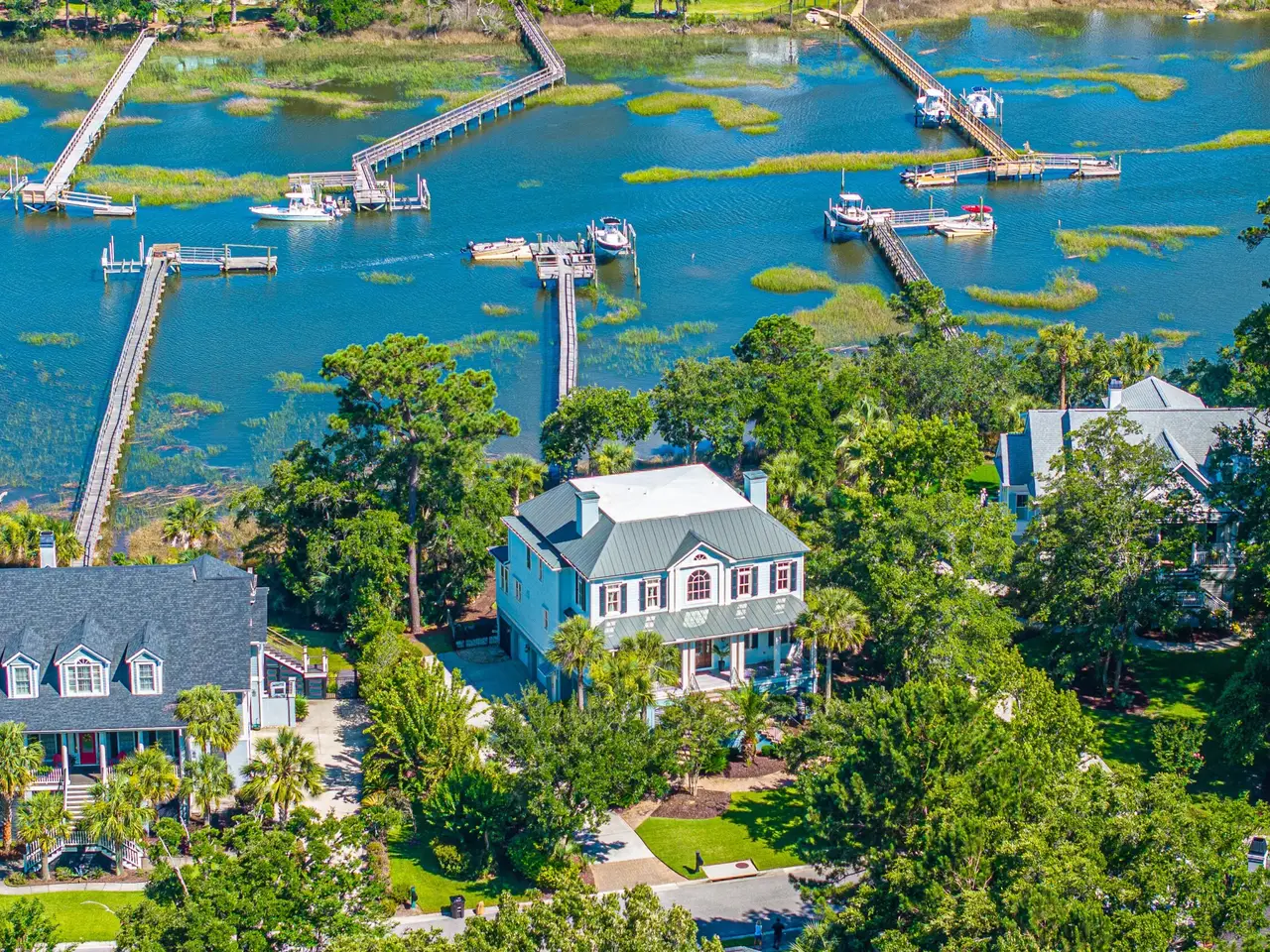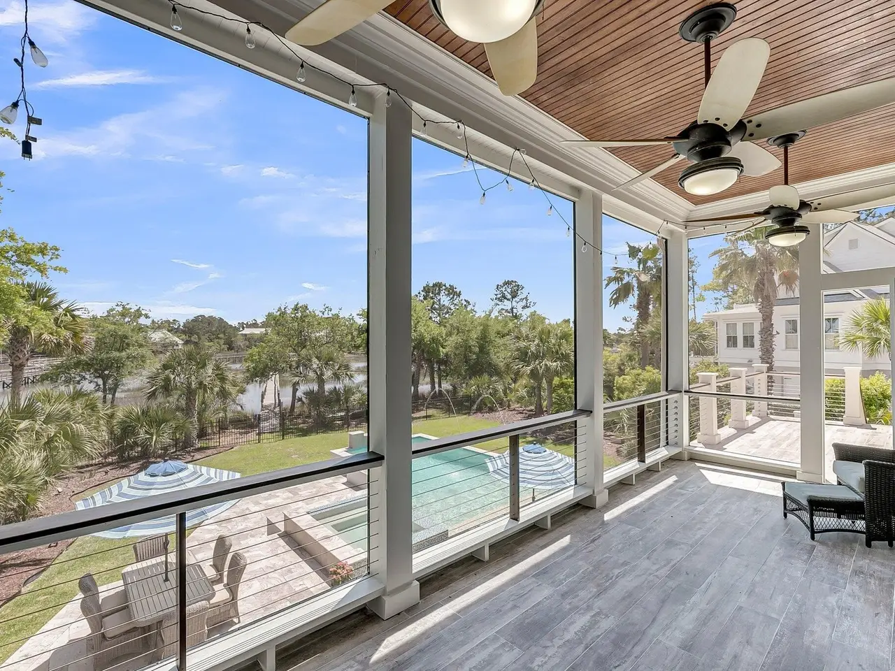 If you've been dreaming of panoramic waterfront views framed by swaying palms and a sparkling saltwater pool with spa, this custom designed Lowcountry retreat is your dream come true. From the moment you arrive, you're welcomed by a grand double staircase encircling a signature palm tree and custom-welded wrought iron railings. Gas lanterns frame a stunning solid mahogany entry door, setting the tone for the elegance and craftsmanship found throughout the home. Thoughtfully designed to capture the beauty of its setting, the open-concept main floor flows effortlessly from a dramatic double-story foyer into the great room, kitchen, breakfast area, and spacious primary suite--all opening to a large, screened porch with breathtaking views of the water and pool. A Butler's Pantry leads tothe formal dining room, and a walk-in laundry, pantry, and powder room complete the main living level. The great room features a coffered 10' ceiling, a gas fireplace with custom built-ins, and a wall of windows and French doors bringing the outdoors in. The gourmet kitchen boasts a large island, custom cabinetry, and premium Jenn-Air appliances including a 48" refrigerator, 6-burner gas cooktop, and beverage cooler. Enjoy waking every morning to a serene waterfront sunrise view from the expansive primary suite, complete with dual walk-in closets, a soaking tub, separate vanities, and a luxurious walk-in shower. Upstairs, four oversized bedrooms (two with ensuite baths, two with a shared Jack and Jill bath), a second laundry room, and a versatile bonus room with a private sun deck offer comfort and flexibility for family and guests. Outside, paradise awaits. The heated and cooled saltwater pool with integrated spa, sun shelf, fountains, and water features is a showstopper. The spacious patio invites sunbathing, entertaining, and peaceful relaxation, all while overlooking your private dock with boat lift and floater, perfect for swimming, fishing, or exploring the waterways by boat! The ground level offers a finished suite with full bath, large living area, second 48" refrigerator, additional storage closet, a walk-in storage room, enclosed workshop, and 3-car garage. Park West Amenities, paved walking paths throughout the community, 3 primary to middle schools, and a Mount Pleasant Recreation complex offer the perfect setting for families! Located in the heart of the Lowcountry, this home is a rare opportunity to own a waterfront sanctuary that seamlessly blends casual elegance, generous space, and the best of indoor-outdoor living!