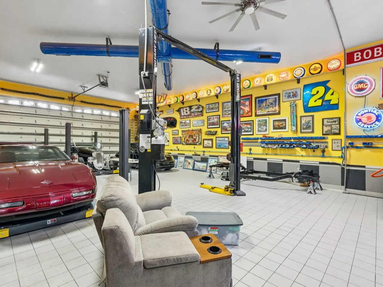 Professional-grade 10-car garage and traditional 3-car garage