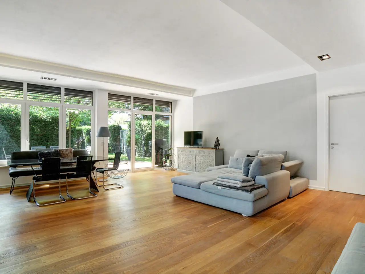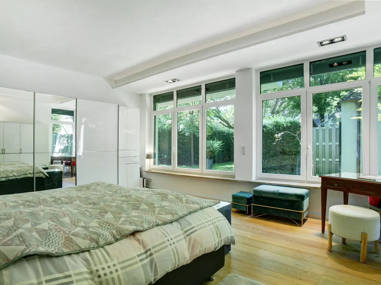 For sale is a spacious, light-flooded and barrier-free 2+1 room loft apartment with approx. 158 m² of living space on the first floor of a small condominium in a well-kept multi-family villa. A special highlight is the separate, private entrance to the apartment. You enter your new home directly - without using the communal stairwell. This ensures a high degree of privacy and gives the apartment a pleasant house-within-a-house atmosphere. The generous amount of space and the well thought-out floor plan make this apartment particularly attractive for couples who value peace, comfort and a flexible living concept. Large window fronts facing the south-west garden with electric blinds let in plenty of light and create an open, inviting living atmosphere. In combination with the high ceilings, this creates a unique sense of space. Another highlight is the approx. 180 m² private south-west-facing garden, which is assigned exclusively to this unit. It offers space for relaxation, for sociable evenings outdoors or simply as a personal retreat in the middle of the city. The apartment is complemented by a basement area with its own bathroom that can be used as a living space - ideal as a guest room, hobby room, wellness area or home cinema. The basement area is heated, has its own bathroom and is directly accessible via an internal connection to the underground garage. Perfect as a guest area or for professionals working from home. Overall, this property combines upscale living comfort, maximum privacy, barrier-free accessibility and an ideal location - perfect for couples who demand quality, space and tranquillity.