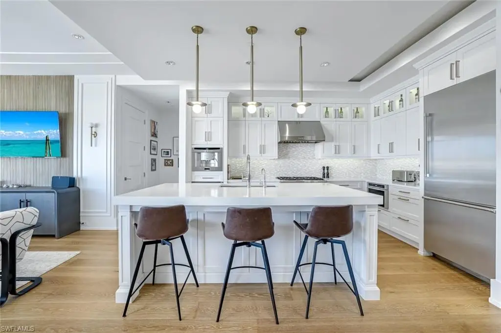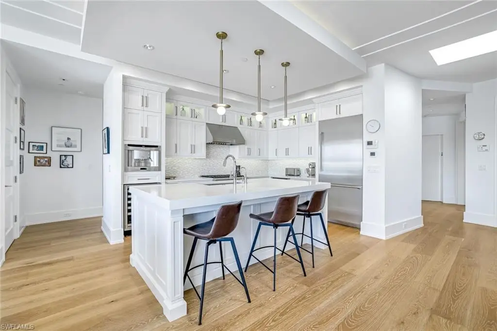 This gem of a residence is perfectly situated in the heart of Old Naples, just steps from fine dining, boutique shops, and the historic Naples Hotel on 3rd Street. From this coveted address, you’ll enjoy world-class restaurants, weekend farmer’s markets, and the coastal lifestyle amenities that Naples is known for - while being only three blocks from the pristine beach. Set within the highly sought-after 382 building, this boutique property offers the exclusivity of just four spacious residences with secure, private entry. Privacy and sophistication define the experience here, making it an ideal choice for a full-time luxury home or a refined pied-a-terre in one of Naples’ most desirable neighborhoods. Apartment 301, located on the third floor, is flooded with natural light through impact-resistant windows and automated pocket walls that open to sweeping northwest views. From the comfort of your home, enjoy picturesque sunsets in the evening and vibrant views of the 12th Avenue South Farmer’s Market below. The open-concept layout boasts 10-foot ceilings and white oak flooring throughout, creating a bright and airy atmosphere that seamlessly blends indoor and outdoor living. The spacious terrace enhances this lifestyle, providing the perfect space to entertain or simply take in the energy of Old Naples. Elegant features and finishes include Thermador appliances with a built-in coffee station, a large walk-in pantry for convenience, an expansive private terrace overlooking 12th Avenue South, and an airy open layout designed for modern living. Every detail emphasizes comfort, style, and functionality. Whether as a sophisticated getaway or a permanent retreat, Apartment 301 offers an unparalleled combination of luxury, privacy, and location in the very best of Old Naples. This one-of-a-kind residence is truly a must-see.