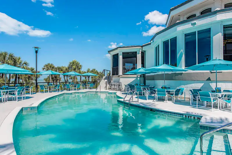 Sunny resort-style pool and spa