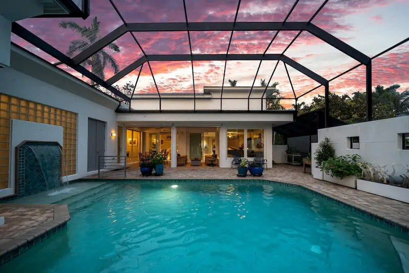 Covered lanai with electric rolling screens