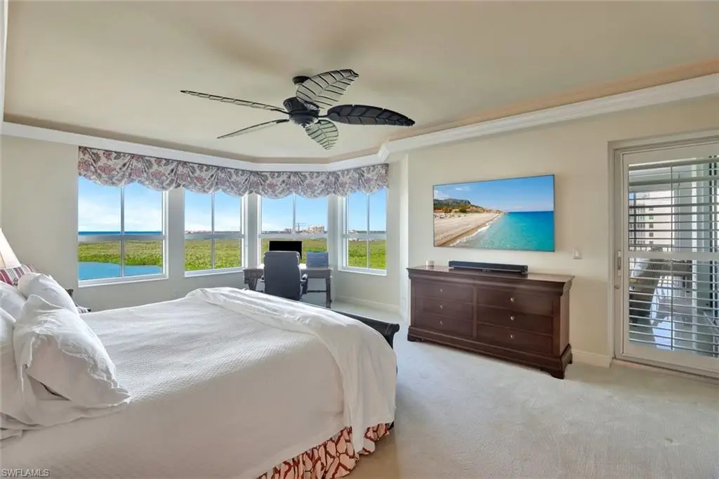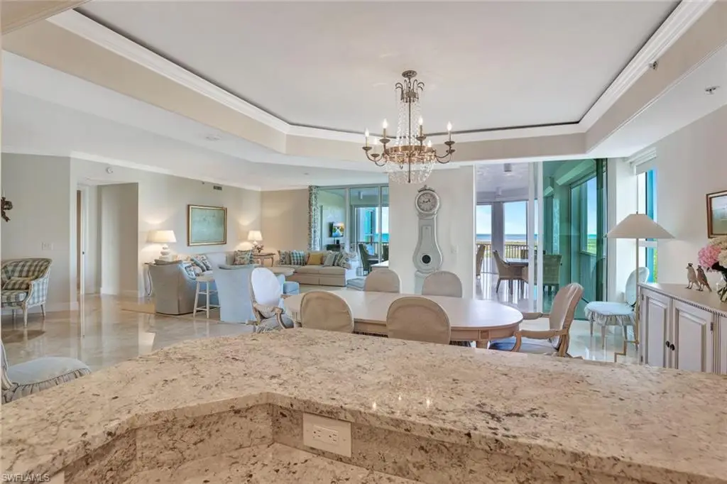 Step into elegance and comfort with this exquisite residence at The Dunes, offering unparalleled luxury and breathtaking views. Enter directly into your unit via a private elevator, where you're greeted by stunning polished marble flooring that sets the tone for sophisticated living. The gourmet kitchen, adorned with light granite countertops, opens seamlessly to a spacious dining area and an expansive great room, creating the perfect setting for entertaining. Boasting 3 bedrooms, 3.5 baths, and a versatile den, this home features a large open floor plan designed to capture natural light and maximize space. The wraparound lanai is a true highlight, offering sweeping views of the Gulf of Mexico and Turkey Bay. From here, enjoy serene moments watching boats glide by and wildlife in their natural habitat. The primary suite is a luxurious retreat with a separate shower, jetted tub, and dual sinks. A second primary suite with its own private balcony provides additional comfort and privacy for guests or family. This residence includes two under-building parking spaces and is located in the prestigious Grande Excelsior building, which offers an array of amenities, including a fitness center, a gas grill area, and a pool with a hot tub. As a resident of The Dunes, you'll also enjoy access to the renowned CLUB AT THE DUNES, featuring a resort-style pool, TIKI bar, and casual and formal dining options. Socialize at the popular Sandbar or take advantage of top-tier fitness facilities with on-site trainers. The community also boasts a full-time tennis staff and an active tennis community. Available for transfer with this unit is the highly sought-after FLORIDIAN CLUB membership, granting exclusive access to a private beach club on award-winning Vanderbilt Beach. The Floridian shuttle conveniently picks you up at your lobby and whisks you away to the beach, where you can enjoy a restaurant, pool, indoor-outdoor seating, and full beach services. The Dunes is PET FRIENDLY, making this a rare gem in Naples condo living. Live the luxury lifestyle with unparalleled amenities in a vibrant, resort-style community. Call for a private showing today!