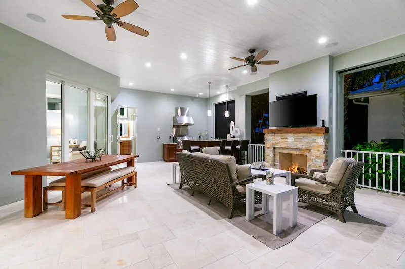 • Outdoor kitchen with automated screens