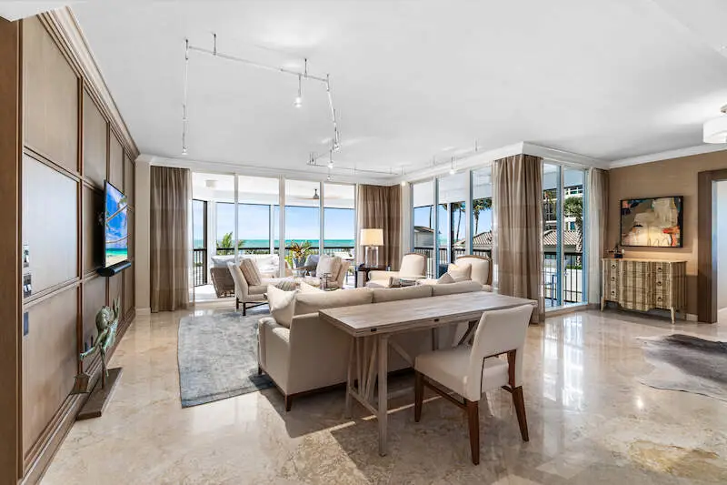 Welcome to luxury living at its pinnacle. This rarely available 04 unit offers a fully furnished residence where opulence meets panoramic perfection. Revel in breathtaking views from every angle, showcasing the unparalleled beauty that surrounds this remarkable property. This unit has been completely upgraded with all designer finishes; featuring the timeless elegance of Jerusalem Limestone flooring that graces the space. The discerning eye will appreciate the bespoke craftsmanship of Final Touch custom Maple woodwork, a testament to the dedication to unparalleled quality throughout. Each room is a sanctuary in itself, with every bedroom boasting its own ensuite, providing the utmost privacy and comfort. Greet the day with a cup of coffee on the East-facing balcony, where you can witness the sunrises. In the evening, indulge in the breathtaking Gulf front views, capturing Naples' renowned sunsets. Immerse yourself in the luxurious lifestyle that Bay Colony offers, where every moment is an opportunity to embrace the extraordinary. Welcome home to a life of unparalleled elegance and refinement in the heart of Naples.