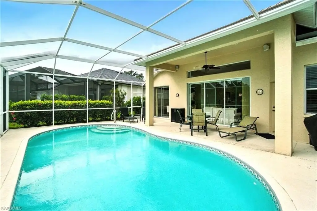 GOLF MEMBERSHIP is included with this gorgeous Stonebridge Country Club home located on a long LAKE VIEW and is ready to move in NOW. Situated on an oversized lot, this elegant single family pool home, offering three bedrooms and two bathrooms nestled within the highly sought-after Stonebridge Country Club- a premier, gated golf community, in Naples, Florida. This light-filled residence offers a spacious open floor plan with soaring ceilings, perfect for both relaxed living and entertaining. The beautiful kitchen features granite countertops, stainless steel appliances, a cozy breakfast nook overlooking the pool and lanai. The master suite is a serene retreat with direct access to the pool area, a large walk-in closet and walk-in shower. Two additional bedrooms offer ample space for guests or a home office. Step outside to your screened in lanai and enjoy the sparkling pool, lush landscaping and tranquil long lake views. Whether you're enjoying morning, or evening cocktails, this outdoor space is your private oasis. Stonebridge Country Club is a bundled golf community featuring a meticulously maintained 18-hole championship golf course, newly renovated clubhouse, tennis and pickleball courts and an active social calendar. Just minutes from Naples' world class shopping, dining, and Gulf beaches, this home offers the BEST of Florida living. GOLF. LIFESTYLE. LOCATION. THIS IS STONEBRIDGE.