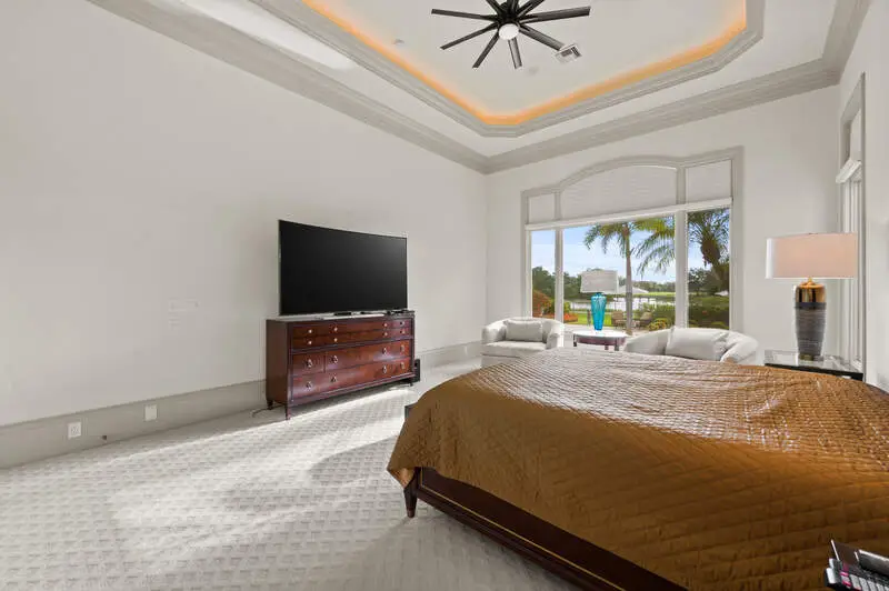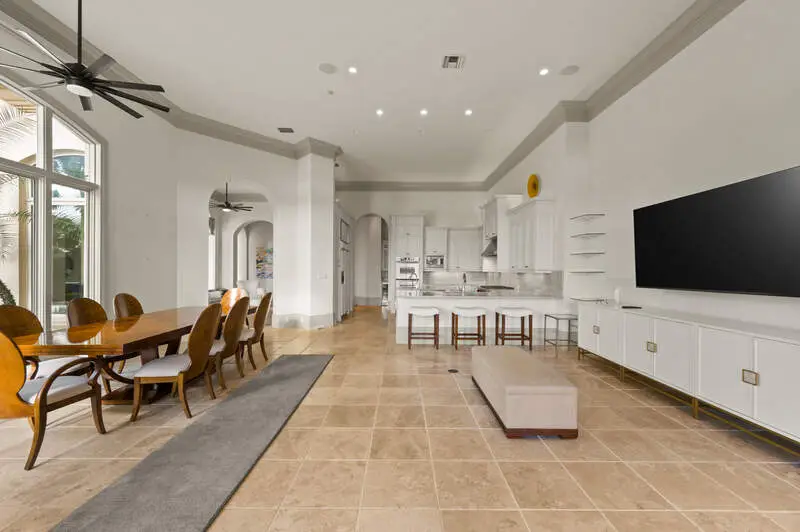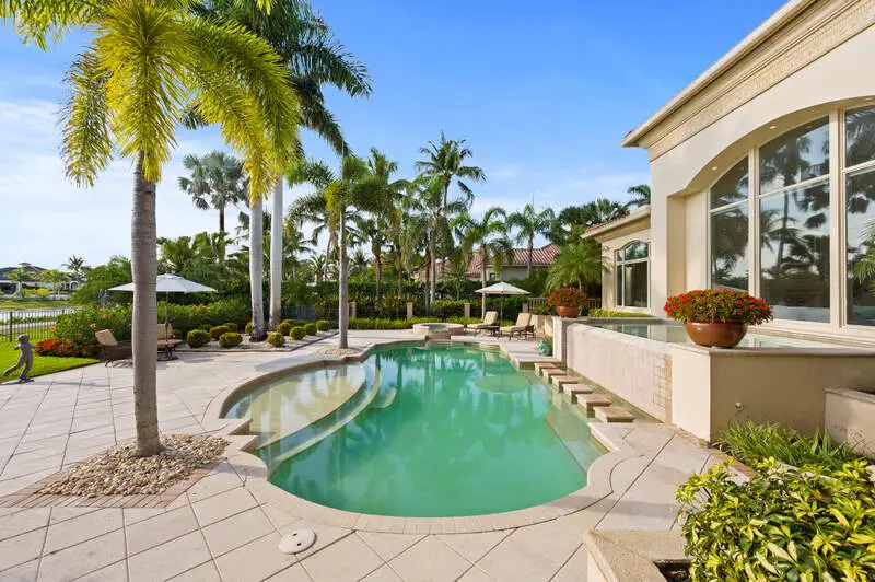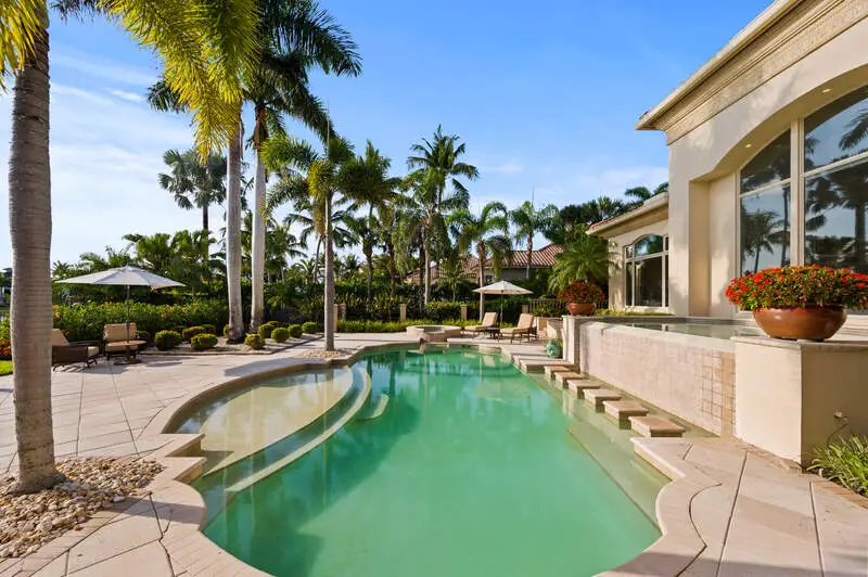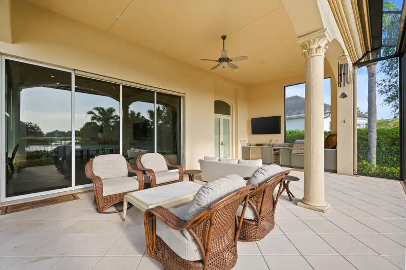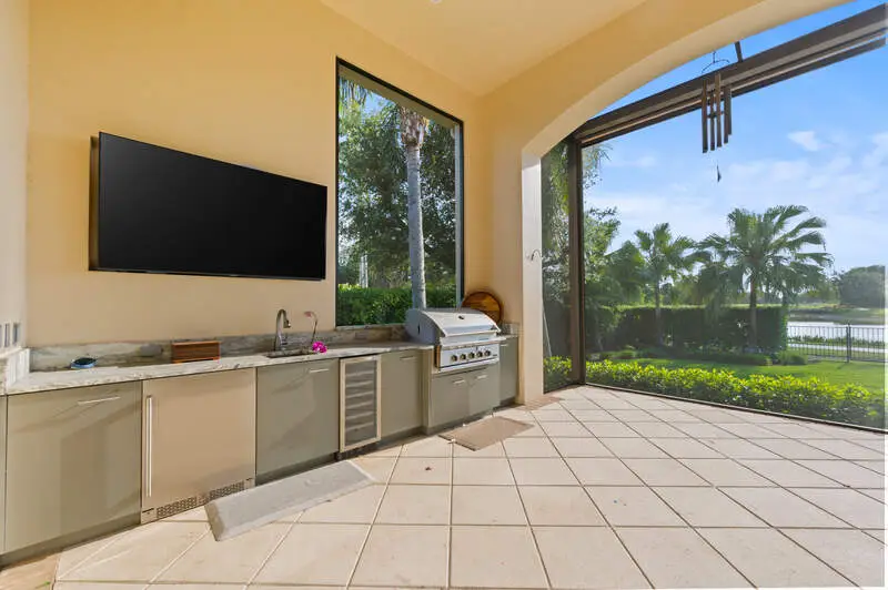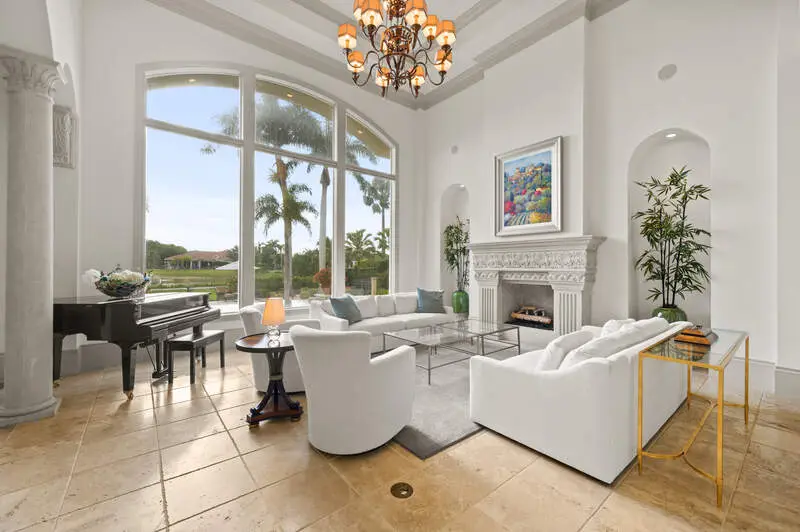 TRANSFERABLE GOLF MEMBERSHIP AVAILABLE! Skip the waitlist and pay only a transfer fee! Ideally situated in the prestigious community of Quail West, this impressive residence offers a thoughtful floor plan complemented by expansive outdoor living spaces including a screened lanai and spectacular golf and sunset views. The luxurious primary suite is uniquely designed with dual en suite bathrooms connected by a shared sitting area creating a tranquil retreat of privacy and comfort. Three additional guest suites offer plenty of space for visitors too. Perfect for entertaining, the open-concept great room flows seamlessly into the chef-inspired kitchen, which features an oversized island, breakfast bar, dual prep sinks, and a walk-in butler's pantry complete with a beverage refrigerator. From terrazzo flooring and tray ceilings to a cozy fireplace and dramatic floor-to-ceiling windows, every detail of this home speaks of refined elegance. The screened lanai includes a covered seating area with an outdoor kitchen, and the custom pool-with integrated spa and sun shelf-is strategically positioned to maximize sun throughout the day. The spacious three-car garage provides ample room for vehicles, a golf cart, and all your Florida lifestyle essentials.