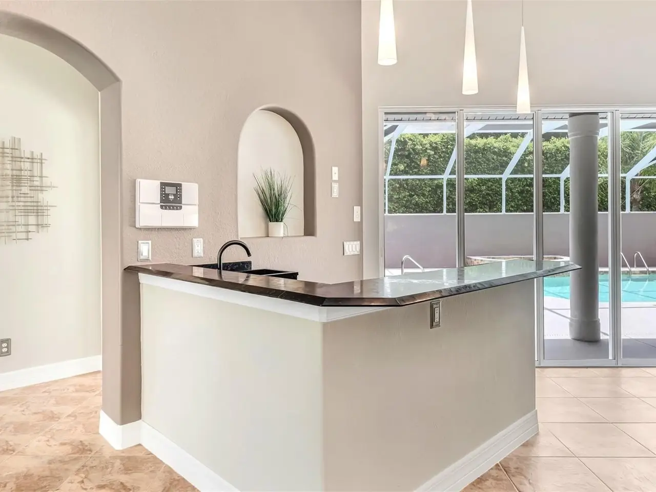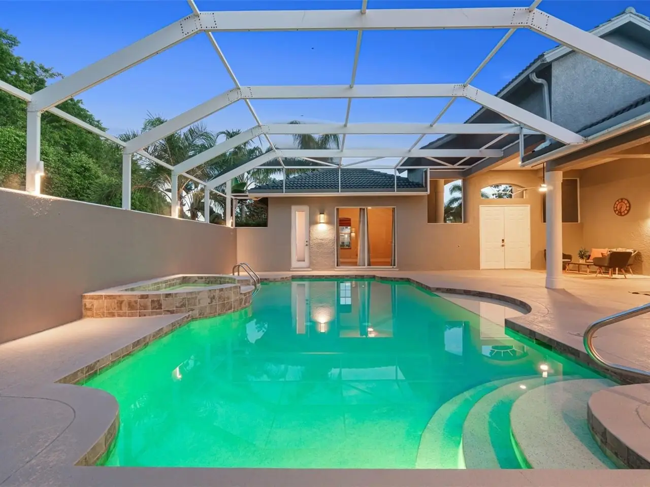 Luxurious Home in the Sought-After Wilshire Lakes Gated Community. Welcome to your dream home in the desirable Wilshire Lakes community. This exquisite property invites you into a stunning courtyard, accessible from various rooms throughout the home. The courtyard features a serene, lighted and heated pool/spa with a cascading waterfall, perfect for relaxation and self-care. Ideal for entertaining family and guests, this private oasis is enclosed by a screened courtyard offering both sun and shaded areas. The pool has new heating, filtration, lighting and fans for ambience, this courtyard/lanai ensures year-round enjoyment. This contemporary design includes four spacious bedrooms and 3.5 baths that has been meticulously maintained highlighted by an extra-large open kitchen with high vaulted ceilings, new cabinetry that boast rare Brazilian granite countertops with an extra-long beveled edge, stunning hardware and light fixtures, a wet bar on a diagonal for great conversations adjacent to the dinette area. The kitchen features appliances, including a pot-filling tap over the stove/oven, microwave, and refrigerator and a new dishwasher. Plenty of cabinet space with a pantry and built in desk area. This home was built in 2005 there are extra windows to bring in the bright natural light along with the appealing views. French doors off lanai that is easily accessible for a pool lavatory that has decorative art tiles and a pedestal sink. Walk through the grand pillars with vaulted ceilings and you will enter the living room, offering a relaxing retreat with privacy bushes and a view of the backyard lake. The primary bedroom is a sanctuary with an ensuite bath featuring a tile shower, spa tub, large walk-in closet, linen closet, dual sinks, vanity and provides a private water closet. Additionally, it has sliding doors leading to the courtyard along with a private side porch/dog run. A spacious laundry room with granite countertops, plenty of cabinetry, a washer/dryer, and a utility sink. That leads to the two-car garage, includes hurricane shutters and attic access. The courtyard includes a separate guest In-law suite/Cabana with a detached private entrance, kitchenette (stove, refrigerator, cabinets, sink), full bathroom, closet, and separate air conditioning. The traditional Florida exterior that has been completely painted, professionally landscaped along with landscaping lights, new sod in the front and the side yard, new roof in 2019. Situated on a private street corner, this home offers low HOA fees with great amenities and access to “A” rated schools. It’s conveniently located near North Naples shopping, dining, parks, and the beautiful Gulf beaches. Don’t miss the opportunity to own this stunning property in Wilshire Lakes. Schedule a tour today and experience luxury living at its finest!