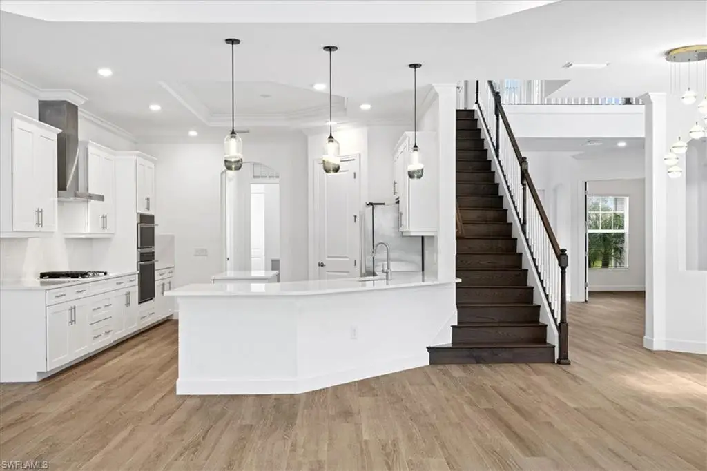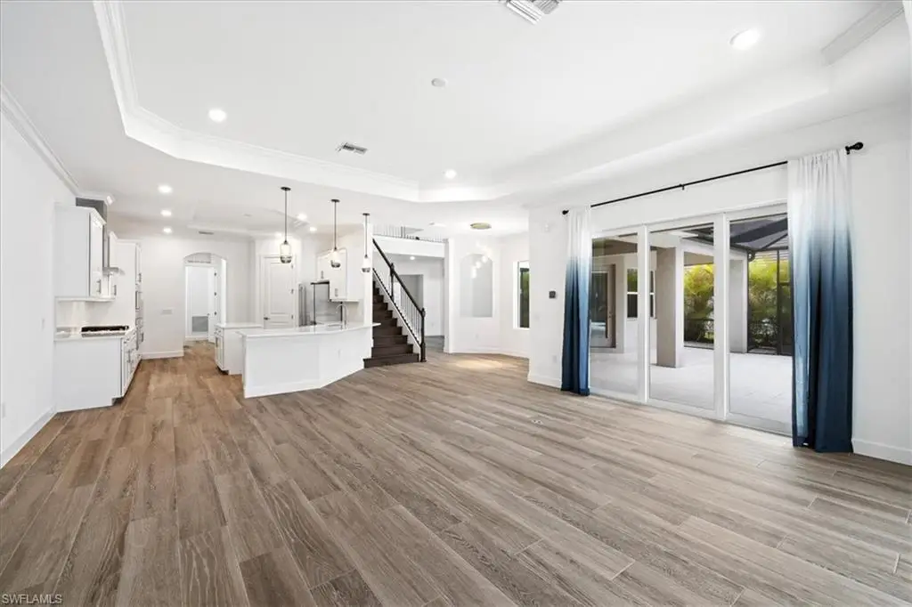 Located in the exclusive, gated community of Sereno Grove, this 2020 estate combines luxury with functionality across its 3,500 sq. ft. of space. The home features 4 bedrooms, 5 bathrooms, a den, a climate-controlled wine room for 1,800 bottles, an upstairs media room, heated pool and spa, a 3-car garage, and extensive patio space with an outdoor kitchen. High ceilings and natural light welcome you, with a design that seamlessly connects the living areas to a chef's kitchen, offering views of the pool and the evening skies. The master suite on the first floor includes a large bathroom, lanai access, and ample closet space. Upstairs, there are 3 bedrooms, 2 bathrooms, and a bonus room with a wine fridge and balcony overlooking the pool. This estate is ideal for those seeking proximity to North NaplesÆ beaches and dining, emphasizing both luxury and practicality for a discerning family. Sereno Grove is a centrally located community with low HOA fees.
