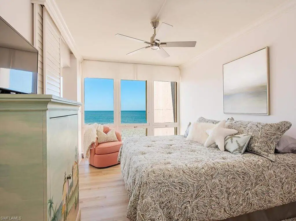 Welcome to La Mer, THE Gulf-Front Park Shore and Venetian Village boutique waterfront SWEET SPOT! Be spoiled by both the wonders of beachfront living, plus the added luxury of having Venetian Village, the neighborhood's charming upscale European-Style shopping and fine dining destination, be just steps away. Not only is La Mer a SWEET SPOT, but so is this SW corner "04", well renowned for its highly preferred location, location, location within the tower. Happily, this Sunny, bright, cheerful, comfortably generous residence showcases lovely improvements, whether it be the removal of walls to open up the crisp, sleek chef's kitchen, the updated wide-plank LTV flooring, fresh paint, or updated baths. Also unique to this residence is its immediate easy access to two of La Mer's three guest suites, plus newly Re-Mastered Fitness, all located on the second floor too! Unique to La Mer Tower is an owner's rooftop gathering area, along with a very special rooftop guest suite, and 24-hour security. Owners further enjoy the oversized upscale south-facing pool, spa, open-air and covered patio, and direct access to the Park Shore Beach-Front 1.5 mile walking and jogging path. ATTENTION Boaters ... Feel free to inquire about the Seller-owned 12'6" wide, 35'+ in length B13 boat slip with new remote controlled 16,000 lb. dual motor lift, available separately at the newly refurbished Venetian Bay slips, located just north of Venetian Village!