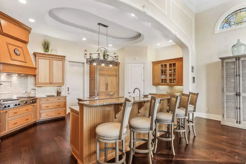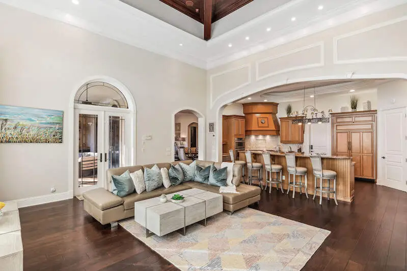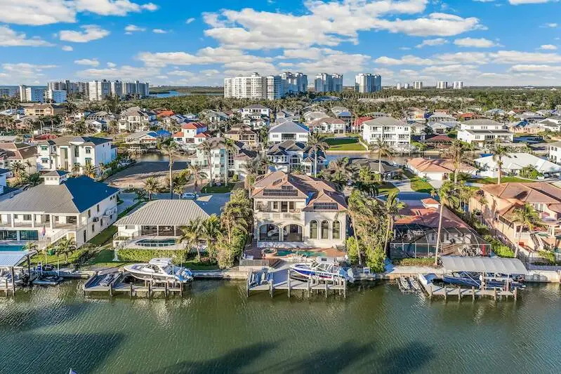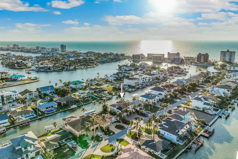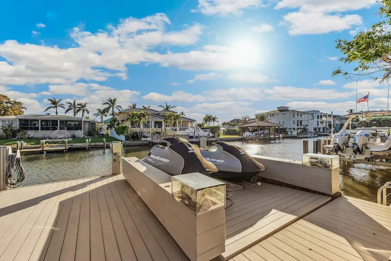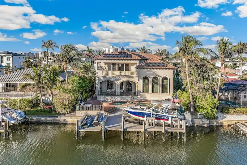 BOATER'S PARADISE! An exceptional opportunity for boating enthusiasts, this waterfront property features a durable fiberglass deck board, a private dock, a seawall, a powerful 28,000-lb boat lift, and a secondary lift perfectly suited for a jet ski. This Southern-exposure residence has been meticulously designed with every detail in mind. Step through the stunning 10-foot arched mahogany front door and into a spacious, welcoming interior with an open floor plan ideal for both relaxing and entertaining. This pristine, custom-designed home is being sold furnished with elegant, high-quality pieces throughout. Showcasing exceptional craftsmanship and attention to detail, the residence offers 4 spacious bedrooms, a private den, and 4.5 bathrooms. The light-filled living and dining areas flow seamlessly into a welcoming family room-perfect for entertaining or relaxing. Notable features include extensive crown molding, a cozy fireplace, soaring ceilings, impact windows and doors, plantation shutters, and an elevator for added convenience. Energy efficiency meets modern living with 27 solar panels, Tesla power banks, spray foam attic insulation, a central vacuum system, and a 3-car attached garage. This beautiful updated residence also includes a good-sized den with custom built-in shelving- ideal for a home office or study. The gourmet kitchen is a chef's dream. It is equipped with a six-burner gas cooktop, warming drawer, Sub-Zero refrigerator, wine cooler, stainless steel appliances, a walk-in pantry, breakfast bar, and stunning granite countertops. The primary suite is a true retreat, accessed through double doors and offering a private seating area, two spacious walk-in California closets, and a private balcony for quiet moments outdoors. The luxurious en-suite bathroom features dual vanities, a Jacuzzi tub, a bidet, and a separate large walk-in shower. Each guest bedroom includes its private bathroom, with one conveniently located on the first floor-perfect for hosting guests. The outdoor space is just as impressive as the interior, featuring a spacious lanai, a fully equipped outdoor kitchen, and a heated pool and spa- perfect for entertaining family and friends or enjoying peaceful, private evenings. With the Gulf of Mexico just minutes away by boat and the Beach within walking distance, this home offers an unbeatable location. Enjoy the best of Naples waterfront living in the highly sought-after Vanderbilt / Conners area. Nearby conveniences include Whole Foods Market, Marcato Shopping Center, Waterside Shops, the Philharmonic Center for the Arts, and Downtown Naples-all just a short drive away. This is more than a home-it's a lifestyle you will be proud to call your home!