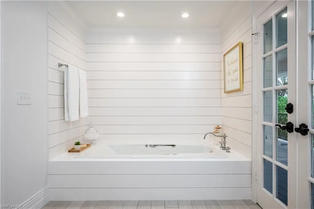 Welcome to an extraordinary residence - a masterfully renovated Classic Southern Plantation House infused with modern elegance and Florida charm. Ideally positioned just minutes from the vibrant dining, shopping, and entertainment of North Naples, this home offers unrivaled convenience and sophistication. From its majestic facade, the expansive front porch and balcony provide seamless outdoor living space, matching the rear structures that overlook exquisite views of the pool, the lake, and a lush golf course. The interior boasts a sophisticated foyer with a dramatic staircase and mezzanine, setting the stage for effortless entertaining alongside an exquisitely decorated bar, a chic living room, and a luxurious yet welcoming dining room. Gourmet chefs will delight in the no-expense-spared kitchen flaunting high-end features such as B&B Custom Cabinetry, dual islands, a farm sink, White Carrara marble countertops, a Thermador range, Vent A Hood range hood, a Sub-Zero integrated refrigerator, plus two under-counter refrigerator drawers and a beverage center, while preserving stunning original elements. Elevate to the master suite spanning 1,300 sq ft, where a reimagined master bath and a coveted closet await behind elegantly framed French doors that open to the front and rear balconies for panoramic vistas. On the third floor, guest quarters promise privacy and spacious accommodations. Experience timeless elegance and modern living in a location that offers everything at your doorstep. Indulge in this remarkable listing today!