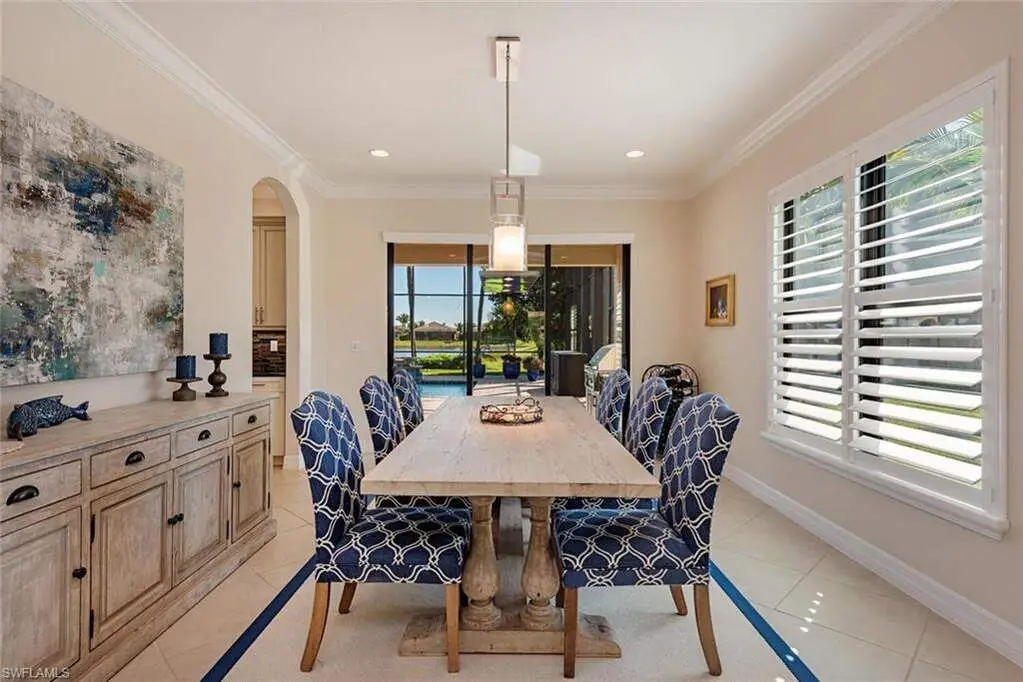 Substantial Price Adjustment=Tremendous Value! Rarely does a home of this caliber become available at such a reduced price. Welcome to this stunning estate home in the highly sought-after Riverstone community in Naples, FL. This Venetian floor plan home is perfect for families seeking both luxury living and a vacation-inspired lifestyle. Offering 6 spacious bedrooms, 5 baths, and a versatile loft, this home provides 4,503 SF of living space. Situated on an oversized .39-acre lot with beautifully landscaped grounds, the property also boasts a serene lake view, creating a peaceful retreat. Step outside to your own private oasis as the entire outdoor space is designed to enhance your vacation-style living. The expansive two-story screened lanai features a sparkling pool with fountain bowls and a relaxing spa. The outdoor kitchen makes it easy to host barbecues and gatherings, while the fenced yard offers plenty of space for kids to play or dogs to run. Inside, the gourmet kitchen is a chef's dream, equipped with an extended walk-in pantry, new accent lighting, a wall oven, an electric GE cooktop with vented hood, both quartz & granite counters & upgraded cream-colored cabinets. The kitchen is located in the heart of the home and flows seamlessly into the family room, formal living & dining areas. Downstairs you will also find a bedroom with a Murphy bed, which makes for fantastic office space or guest room. Upstairs, the primary suite offers a spacious retreat, complete with dual walk-in closets and an ensuite bath featuring a newer frameless glass shower door and a soaking tub. The upstairs also features a balcony that offers multiple access points, providing an ideal place to relax, enjoy the serene lake view, and experience Florida's beautiful sunrises. Fine finishes include plantation shutters, an upgraded wood/iron staircase, hardwood floors upstairs, decorator lighting & fans and crown molding. For added convenience and comfort, this home features a finished laundry room with upgraded LG washer & dryer, a sink, folding counter, and cabinetry. The home is freshly painted on the exterior & has new exterior lighting. Two newer A/C units ensure comfort year-round. A whole home generator with 500-gallon propane tank plus impact windows and doors provide convenience & peace of mind during and after a storm. Riverstone offers a social, vacation-inspired lifestyle for all ages. Located in North Naples, minutes to I-75 & zoned for "A" rated schools. Recreation area includes a fitness center, social hall, resort style pool, lap pool, spa, 5 lighted tennis courts, outdoor basketball/pickleball, full indoor basketball court, tot lot, children's water play area & game room & an activities coordinator so it is easy to make new friends. If you're looking for a home that combines comfortable living with a vacation lifestyle, look no further. This stunning property in Riverstone is the perfect place to create lasting memories with your loved ones!