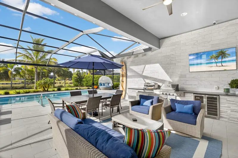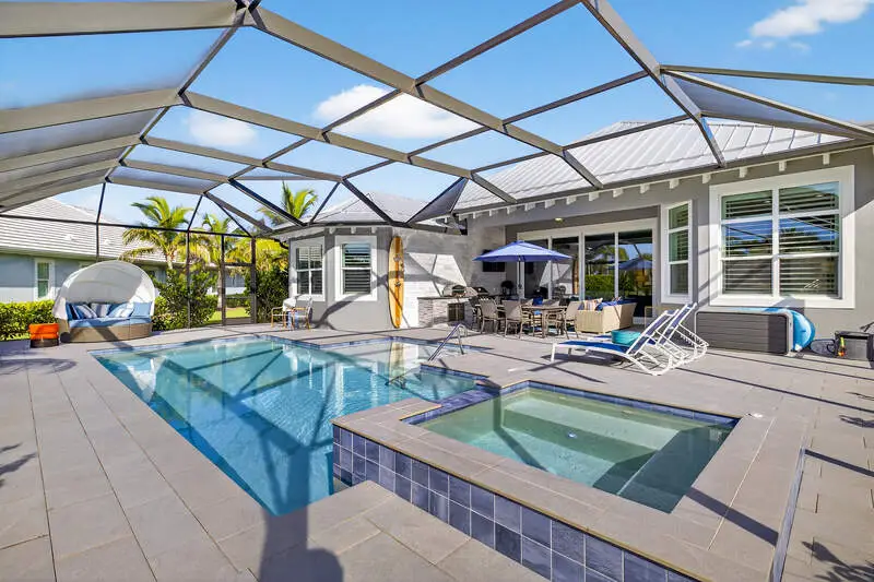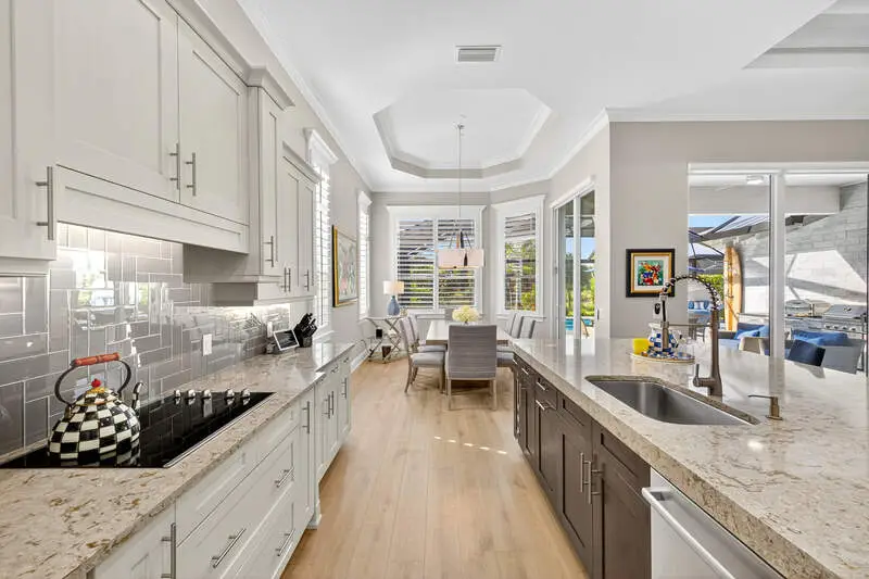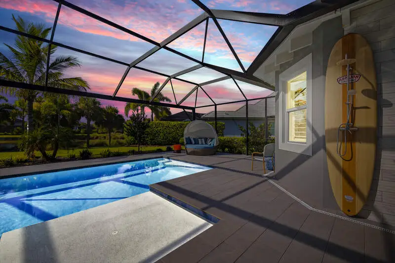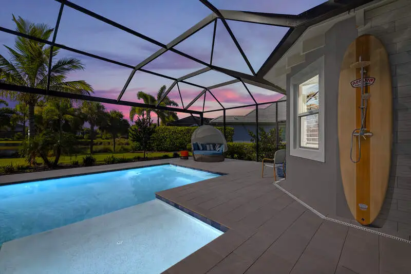 RARE OVERSIZED 1/2 ACRE LOT WITH DESIREABLE REAR SOUTHEASTERN EXPOSURE! This impeccable Minto built 'Pimento' home in The Isles of Collier Preserve is ideally situated on a premier, oversized, acre pie shaped lot featuring desirable southeast rear exposure. This generous lot provides the option for the new owner to add onto the home, if desired! This beautifully customized property is a showcase of coastal luxury, thoughtful design, and modern convenience. The light-filled open-concept floor plan features luxury vinyl plank flooring, plantation shutters, custom lighting and fans, and soaring ceilings throughout. A chef-inspired kitchen boasts quartz countertops, soft-close shaker cabinetry with built-in spice racks, 'Shelf Genie' pull-out drawers, a new refrigerator & garbage disposal (2023), and Bosch dishwasher (2025). The living area includes a custom built-in entertainment center with electric fireplace, while motorized privacy shades add function and comfort. Both bathrooms were fully remodeled in 2025, offering spa-like finishes including frameless glass showers, custom vanities with storage, and custom storage niches. Upgrades in the 3-car garage include professionally installed overhead motorized storage, epoxy floors, custom built-ins, slat walls, epoxy flooring and an A/C, mini-split. Additional upgrades include a new hot water heater (2024), and Electrolux washer and dryer on pedestals (2023). Custom closets are found throughout the home-including dual walk-ins in the primary suite. Enjoy true indoor-outdoor living on the expansive lanai featuring a brand-new saltwater pool and spa, travertine pavers, custom outdoor kitchen featuring a gas grill, beverage fridge, dramatic tile backsplash, and outdoor shower (2023) -perfect for entertaining or relaxing in privacy. Professionally installed landscape & lighting includes 30 mature palm trees, calusia privacy hedging, custom up-lighting, and refreshed garden beds front and back (2025). Additional peace of mind comes with a metal roof, impact-resistant windows and doors, retractable screen front entry, and a freshly painted interior and exterior. Isles of Collier Preserve, residents enjoy resort-style amenities including a clubhouse, fitness center, resort and lap pools, 6 tennis courts, 14 pickleball courts, kayaking, scenic nature trails, and the waterfront Overlook Bar & Grill. Just minutes to downtown Naples, 5th Avenue, and white sand beaches. This move-in ready home is a rare opportunity to enjoy luxury living in one of Naples' most desirable communities.