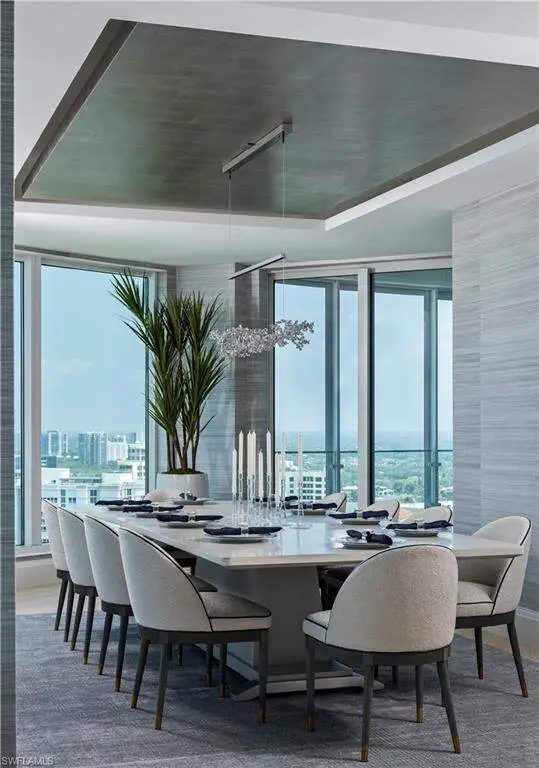 Where coastal elegance meets timeless sophistication, Penthouse #3 at The Regent offers a truly rare opportunity to own one of Naples' most prestigious sky residences. Encompassing 12,135 square feet of thoughtfully designed living space, this exquisite penthouse is gracefully perched above the turquoise waters of the Gulf of Mexico, with unrivaled panoramic views stretching endlessly along the coastline. Bathed in natural light and kissed by Gulf breezes, the residence seamlessly blends classic refinement with relaxed seaside charm. Expansive glass walls open to generous terraces, inviting the outdoors in and capturing the colors and calm of the sea from sunrise to sunset. The home features five spacious bedroom suites, each with a private bath, along with two additional powder rooms, a richly appointed study, a comfortable media room, and a tranquil cabana room that offers a quiet escape with direct terrace access. A distinctive and sought-after highlight, the private guest cottage suite provides a serene haven of its own-complete with a full guest kitchen, covered terrace, and private elevator access-perfect for extended stays or independent living quarters. From the elegant formal spaces to the chef's kitchen and discreet butler's pantry, every detail has been curated to enhance livability while maintaining a sense of effortless luxury. Rarely found in high-rise residences, the climate-controlled private 3-car garage offers both convenience and security. Set within The Regent at Park Shore, a landmark of coastal luxury with white-glove service, gated privacy, and direct beach access, Penthouse #3 offers not only a residence, but a lifestyle-where sophistication flows as naturally as the tides, and every day is framed by the beauty of the sea.