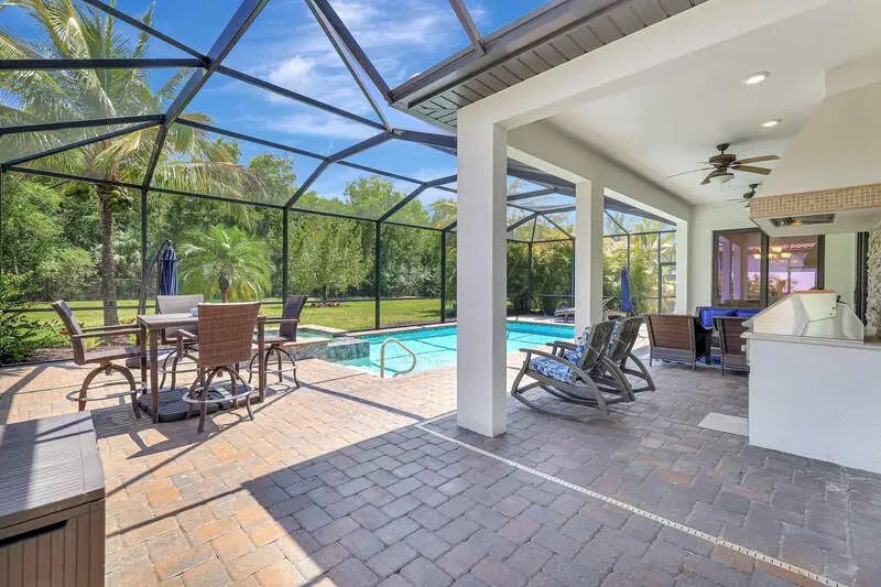 Sophisticated Living on a Grand Scale in LaMorada. Touch every moment and create lifelong memories in this pinnacle of luxury 5-bedroom, 4.5-bath home with a private den and loft, ideally positioned on an oversized lot in the highly sought-after LaMorada community of North Naples. With commanding curb appeal and refined craftsmanship throughout, this home exudes timeless elegance and comfort. Showcasing the popular Cornell floor plan, the property offers over 4,000 square feet of thoughtfully designed living space that seamlessly blends sophistication, functionality, and warmth. At the heart of the home, a gourmet kitchen awaits, complete with quartz countertops, high-end stainless-steel appliances, a natural gas cooktop, and a generous island ideal for both entertaining and everyday living. Multiple gathering spaces, including a formal dining area, spacious great room, and inviting living spaces, overlook the resort-style pool and lush backyard, creating a perfect setting for connection and relaxation. The main level includes a full en suite bedroom with private pool access-ideal for multigenerational living or overnight guests. Upstairs, three additional en suite bedrooms, a generous loft, and a flexible bonus room (perfect as a sixth bedroom, media room, or playroom) provide versatile options for every lifestyle. Design details such as rich hardwood flooring, custom wood accents, and elegant plantation shutters add a layer of warmth and sophistication to every space. Step outside to your private outdoor sanctuary-complete with an extended lanai, summer kitchen, and ample room for dining, lounging, or soaking in the Florida sunshine. LaMorada offers an unmatched lifestyle with exclusive amenities, including a luxurious clubhouse with culinary facilities, a state-of-the-art fitness center, private movie theater, tennis and pickleball courts, massage suites, and a full-service poolside restaurant-all within a vibrant, active community. This is your invitation to live beautifully in a home that perfectly embodies grace, comfort, and grandeur.