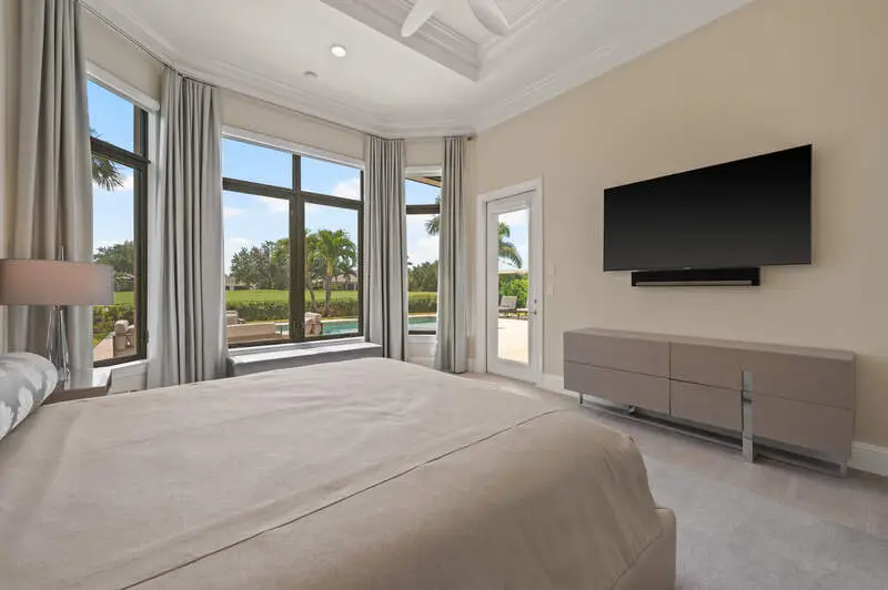 IMMEDIATE GOLF AVAILABLE - SKIP THE WAITLIST! Experience the timeless merging of chic elegance and clean lines all within the existing open spaces of this updated villa. Reimagined by Jorge Castillo Interiors/Miami, every detail has been meticulously curated to create a refined, tranquil space that's both sophisticated and inviting. New floors were added to match the main area flooring so that each room merges effortlessly. The sleek, tailored millwork of the custom built-ins thoughtfully integrated throughout the home offers both aesthetic appeal and practical storage. The split floor plan features an open great room with gathering and dining areas as well as a gourmet kitchen boasting a large new island plus stainless steel appliances. The high design continues with a go-to wine room/game room anchored by built-in wine coolers. The primary suite has been redesigned with two re-styled walk-in closets, new shower tile and shower glass, new faucets and an enviable view. Many new designer light fixtures and fans are featured throughout as well as a renovated, air-conditioned 3-car garage with new epoxy flooring and insulated ceiling and doors. Take it outside for amazing sunset views from an expansive lanai that is the envy of the area. All new retractable screens, new tile surrounds for fireplace and grill backsplash, new cabinetry and waterfall countertops with a separate new counter for al fresco dining. Surrounded by new landscaping and open golf course views, there is no need to go inside!
