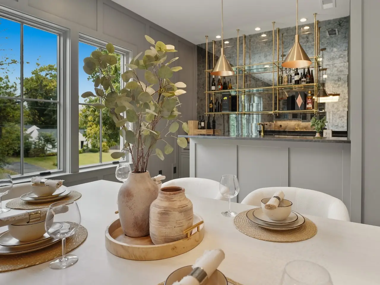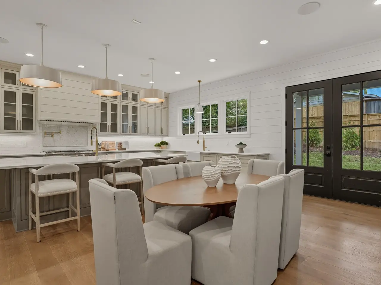 Every inch of this remarkable home reflects a deep commitment to quality, craftsmanship & timeless design. Built on a steel-reinforced poured concrete foundation w/brick construction, this residence combines unwavering strength w/exquisite architectural details. Classic bead board ceilings on front & back porches along w/Coppersmith gas lanterns set the tone for a home that's as beautiful as it is enduring. Upon entering, you are greeted by the soothing sounds of your personal Sonos amp system w/18 ceiling speakers & individual fader controls smartly placed throughout common living areas. Kitchen is a chef's dream w/Calacatta Miraggio Cove Quartz countertops, 48" Wolf gas range w/double ovens, Sub-Zero refrigerator &freezer columns, Bosch Benchmark dishwasher & Scotsman nugget ice machine. A large walk-in pantry w/ prep space completes the culinary experience. Great room centers on a dramatic wood-burning stone fireplace complemented by a custom TV console w/shelving & white oak accents. Separate spacious dining room is complete w/bar area serving as both a visual centerpiece & an entertainer's dream. It features black honed countertops, custom built-ins for glass & bottle storage, wine frig & ice maker & brass rail/glass shelving set against antiqued smoked mirrors. Inviting Primary suite is a retreat to behold w/a vaulted wood plank ceiling, Taj Mahal quartz surfaces, Brizo Litze luxe gold fixtures, double vanities & a graciously-sized soaking tub. Walk-in closet offers an expansive 20-drawer center island & specialty shelving like angled shoe racks. Main-level laundry offers extensive cabinetry w/over 160 cubic feet of storage--ideal for linens, luggage, and seasonal needs. Upper floor boasts a central gathering room from which 4 bedrooms rest, each w/ their own private bathrooms & walk-in closets. Another full laundry room is found here w/front-facing window that allows sunlight to wash across the patterned floor tile.