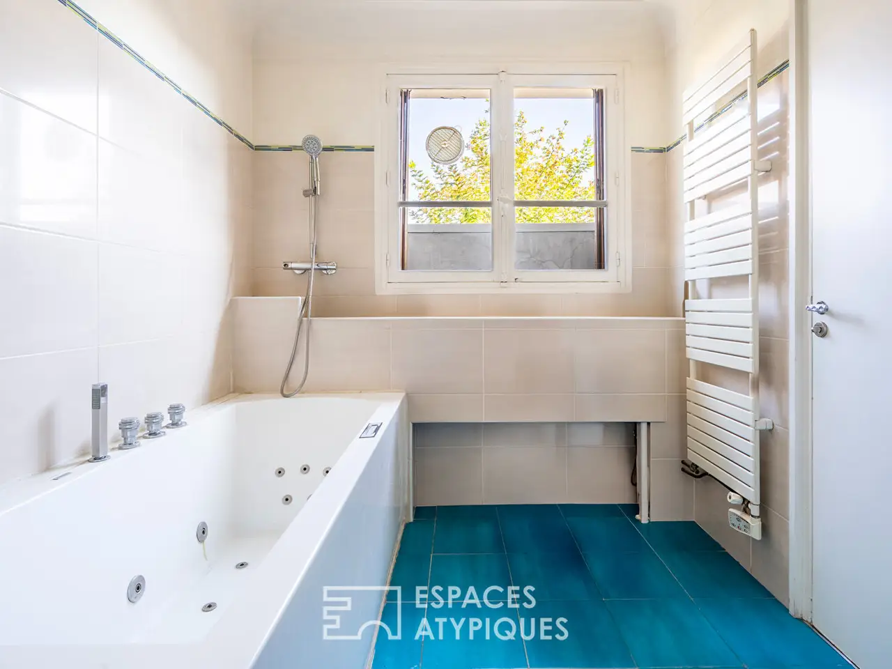 In the sought-after Église district of Neuilly-Plaisance, this former orangery dating from 1880, subtly renovated, offers 160 m2 of bright and harmonious spaces, set in the heart of a 541 m2 wooded garden with no overlooked views. A testament to its time, the original building has retained all its charm, while its recent extensions, including a vast living room and a glass roof, enhance the property with elegance and modernity. These living spaces, facing the garden, offer remarkable volume, enhanced by a ceiling height of over 3 meters. Numerous windows, ideally oriented, allow natural light to flood the spaces at all hours of the day. The open kitchen, directly connected to the living room, creates a welcoming and pleasant space, ideal for entertaining or sharing everyday moments. A bathroom with a toilet completes this level. Upstairs, the sleeping area consists of a library landing, three generous bedrooms designed for comfort and tranquility, and a bathroom with WC. On the mezzanine floor, a 65 m2 space gives free rein to the imagination: an office, recreation room, home theater, or workshop. Outside, an intimate patio extends the living spaces in a soothing atmosphere, while the garden, meticulously maintained and completely private, invites relaxation. A unique and inspiring property, combining period charm, modern comfort, and a prime location in the heart of Neuilly-Plaisance. A lock-up garage completes the property's features, as does a 45 m2 expansion potential, to be developed as needed. RER A: Neuilly-Plaisance 800 meters City center: 350 meters REF. 10695 Additional information * 8 rooms * 3 bedrooms * 2 bathrooms * 2 floors in the building * Outdoor space : 541 SQM * Parking : 1 parking space * Property tax : 3 632 € Energy Performance Certificate Primary energy consumption f : 406 kWh/m2.an High performance housing