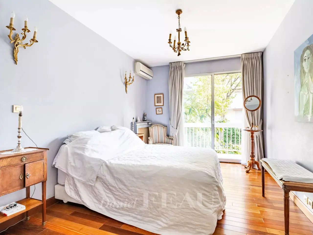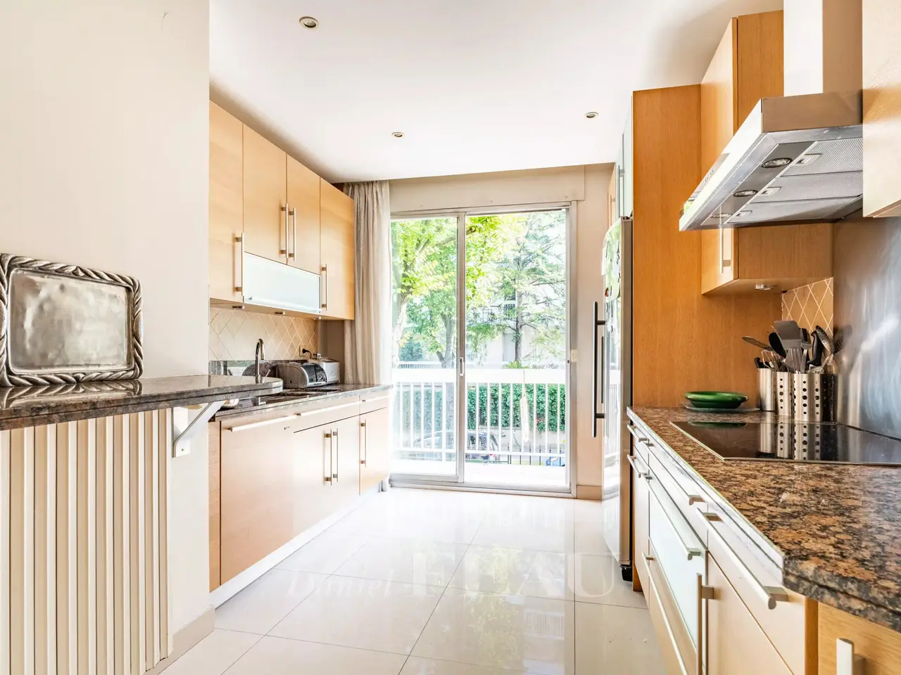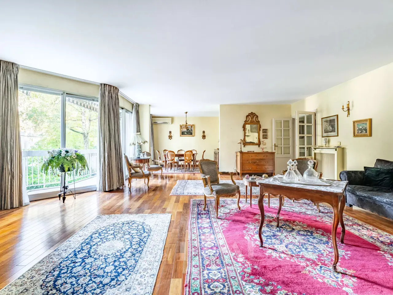 Saussaye neighbourhood. This bright and peaceful family apartment is in a luxurious residence in the immediate vicinity of the shops, the schools and the transport networks. It includes a spacious double living/reception room opening onto a wide balcony overlooking the residence’s leafy gardens, a kitchen with dining facilities, three suites each with a bathroom/wc or shower room/wc, and a guest wc. The bedrooms open onto a continuous balcony. A 4th would be possible. Air conditioning. With a parking space and a cellar. A second parking space may be acquired for a further 30000€. Pasteur catchment area. An ideal family apartment on the north-western edge of the capital.
