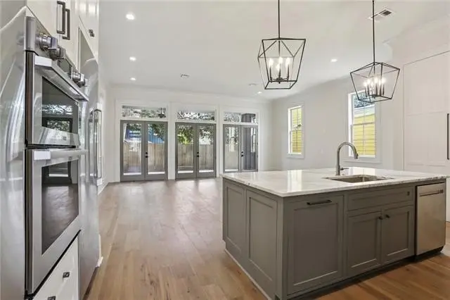 Experience the quintessential New Orleans lifestyle at 3324 Camp Street, a stunningly renovated home featuring the charm of its 1890 Victorian origins and the luxury of modern design. This four-bedroom, three-and-a-half-bathroom residence places you steps away from the best of the Garden District, renowned coffee shops, vibrant bars, top-tier restaurants, and endless boutique shopping. Built with modern convenience in mind, the home is detailed throughout with oversized baseboards and crown molding for a polished, high-end feel. The open-concept design flows seamlessly to the backyard, which is shaded and ideal for weekend lounging or puppy play, with ample space to add a pool. The kitchen boasts a Dacor appliance package for chef-level performance and bright, clean finishes perfect for entertaining. Ascend the white oak stairs to the Primary Suite, where the bath features a luxurious rain shower and sleek, vertical slat tile with subtle wood-grain detailing for a true spa vibe. The Boutique-Style Primary Closet offers incredible organization, including dedicated jewelry storage, accessory cabinets, and a shoe gallery display. Enjoy endless hot water with a tankless water heater, energy-efficient windows for comfort and savings, and a convenient wet bar. The rare, private driveway accommodates two cars in this sought-after neighborhood. This home delivers the best of both worlds, the charm of historic surroundings with the ease of a new 2024 renovation. A true gem where thoughtful finishes and textures just work.
