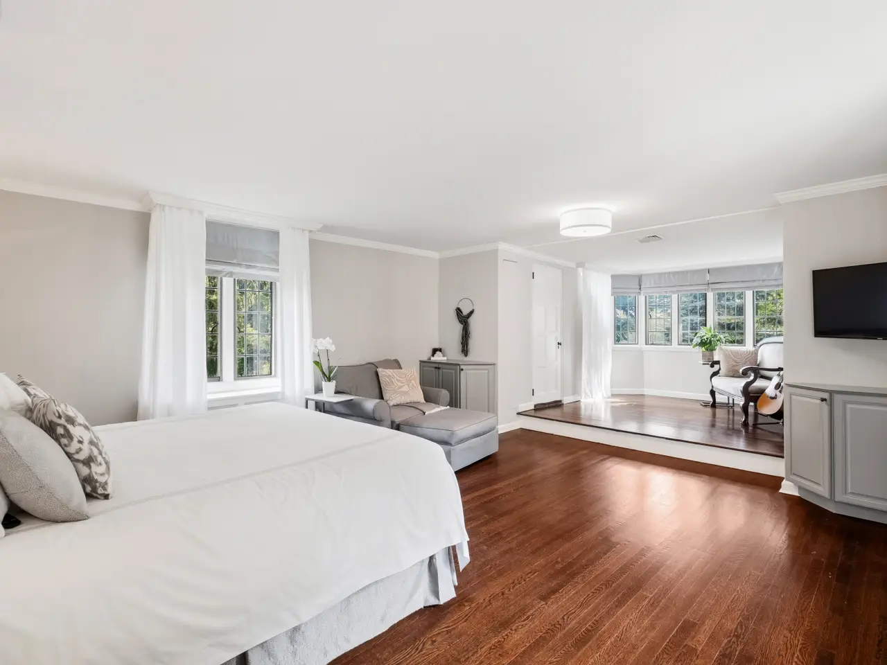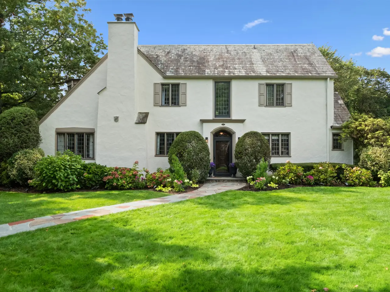 Modern vibe meets classic charm in this spectacular updated English Tudor, gracing over a third of an acre in one of New Rochelle's most sought-after locations. With magnificent curb appeal and stunning original architectural details perfectly paired with tasteful updates, it's easy to fall for this beauty. The gracious entry foyer opens to a breathtaking sunken living room with 12-foot ceilings, fireplace and remarkable original stained glass windows which have been artfully restored. The fabulous family room features skylights and wall to wall windows overlooking the gorgeous gardens, porch and patios. A formal dining room opens to the captivating grounds, seamlessly blending the indoor and outdoor entertaining space. Recently updated, the eat-in kitchen presents extensive cabinets, granite counters and new stainless steel appliances. The first floor is complete with a powder room as well as a coveted first floor bedroom with a beautiful ensuite bathroom. All bedrooms feature deep closets and all five bathrooms have been redone with designer touches. The spectacular primary bedroom features a sitting area, double closets and an ensuite bath with double sinks and a walk-in shower. There are striking original details at every turn, and this haven is as pristine as can be. Enjoy recessed lighting, handsome hardwood floors and three-zones of central air conditioning and heating. Home is wired for portable generator, a wireless ADT security system and boasts a two car garage with high ceilings, epoxy flooring and storage. Plus, the basement provides over 1000 sq ft of inviting bonus space. Nestled amongst mature trees and specimen plantings, the backyard is a private, tranquil oasis. All this, in a convenient location near shopping, restaurants, schools and worship. Just a 30 minute train ride to NYC.