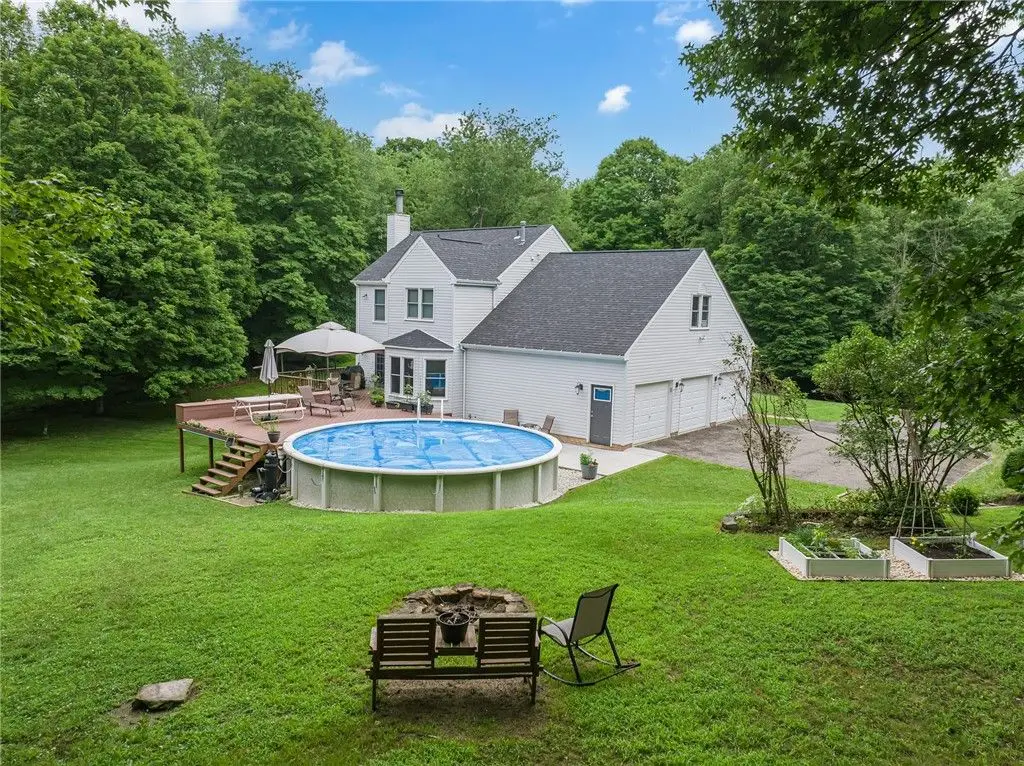 FIRST TIME OFFERED! Welcome to this stunning 4-bedroom, 3.5-bathroom home nestled on 7.48 acres with a pool and extra garages. This spacious home features numerous updates, including new windows and a new roof in 2022. Step into the beautiful eat-in kitchen filled with natural light - perfect for family gatherings and everyday meals. The finished basement includes a second kitchen, a gorgeous bathroom with heated floors, and additional living space. The upstairs boasts a huge bonus room with tons of storage that can be used as the 4th bedroom or extra living space. There is a 3-car attached garage plus a large 2-car detached garage, offering ample space for vehicles, tools, or projects. Don't miss this incredible opportunity to own a private home with room to grow both inside and out. This home blends comfort, style and functionality!