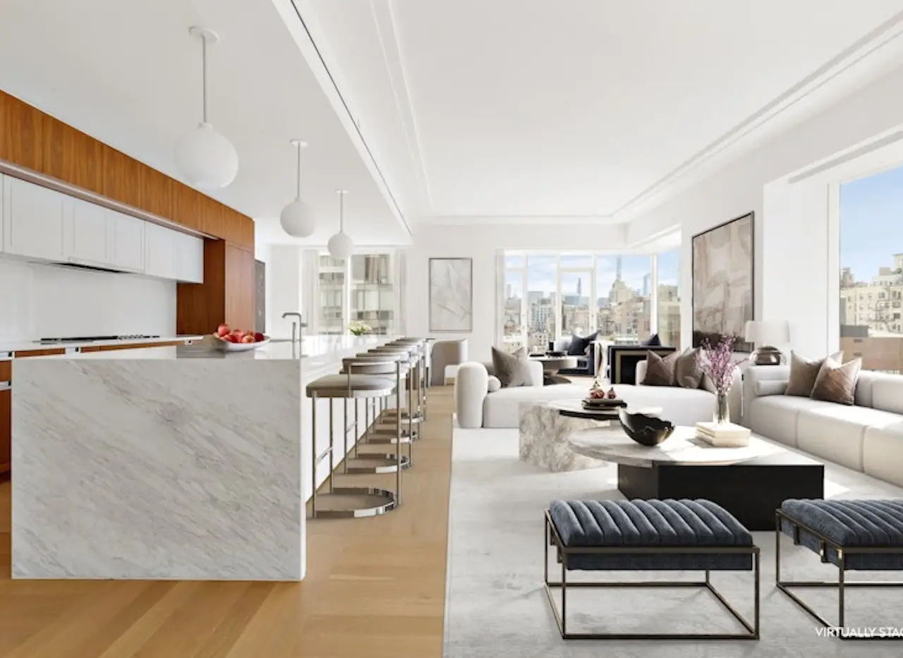 14B at 1289 Lexington truly has it all: four oversized bedrooms, a corner great room with loft-sized proportions, soaring ceilings to 11 feet, and southern and western exposures with beautiful views and light. A perfect pairing of functionality and style, this new tower was designed by the esteemed HOK Architects, with bespoke interiors by Architectural Digest 100 Designer Lee Mindel of SheltonMindel. SheltonMindel's commitment to quality materials and design is showcased in the ultraluxe kitchen and baths. The chef's kitchen features walnut cabinets, a full suite of Gaggenau appliances (including a vented stove hood), custom pendant lights, an elegant slab marble island and Glassos counters. The bathrooms are worthy of one of the world's great spas, with custom vanities, and slab and mosaic stonework in a soothing natural palate. In addition to aesthetics, the focus on comfortable living is echoed throughout this special residence. There is elegant art lighting, a large laundry closet with a vented dryer, designated Nest controls in each room, and custom window pockets with electricity. 1289 Lexington's amenities include a business center with four private study/Zoom rooms and a large meeting room; a Media Creation and Gaming room with Karaoke and musical instruments; an elegant lounge with a catering kitchen and landscaped terrace; a rooftop terrace with fireside seating and outdoor kitchen with grill; a windowed fitness center designed by The Wright Fit; a fun-filled playroom created by Silver Hill Atelier. Perfectly centered between two parks, and next to myriad forms of transportation, Apartment 14B is an oasis of quiet amid all the excitement that makes the Upper East Side so desirable. Private In-Person Appointments Available. Immediate Occupancy. Some photographs of this apartment are virtually staged. All dimensions and square footages are approximate and subject to, among other things, normal construction variances and tolerances. Square footage exceeds the usable floor area. Sponsor reserves the right to make changes in accordance with the terms of the Offering Plan, as amended ("Plan"). In the event of any inconsistency between this floor plan and the floor plans contained in the Plan, the floor plans contained in the Plan shall prevail and control. Plans and dimensions may contain minor variations from floor to floor. Any depictions of personal or condominium property, including, without limitation, any interior and exterior decorations, furniture, furnishings, fixtures, appliances, and landscaping (including the maturity of growth of landscaping), are for illustrative and conceptual purposes only. No representation or warranty is made that a unit owner will be able to implement the furniture layout shown above. Sponsor makes no representations or warranties except as may be set forth in the Plan. THE COMPLETE OFFERING TERMS ARE IN AN OFFERING PLAN AVAILABLE FROM SPONSOR. FILE NO. CD17-0315. SPONSOR: 86LEX OWNER, LLC, 445 PARK AVENUE, SUITE 1902, NEW YORK, NY 10022. EQUAL HOUSING OPPORTUNITY.