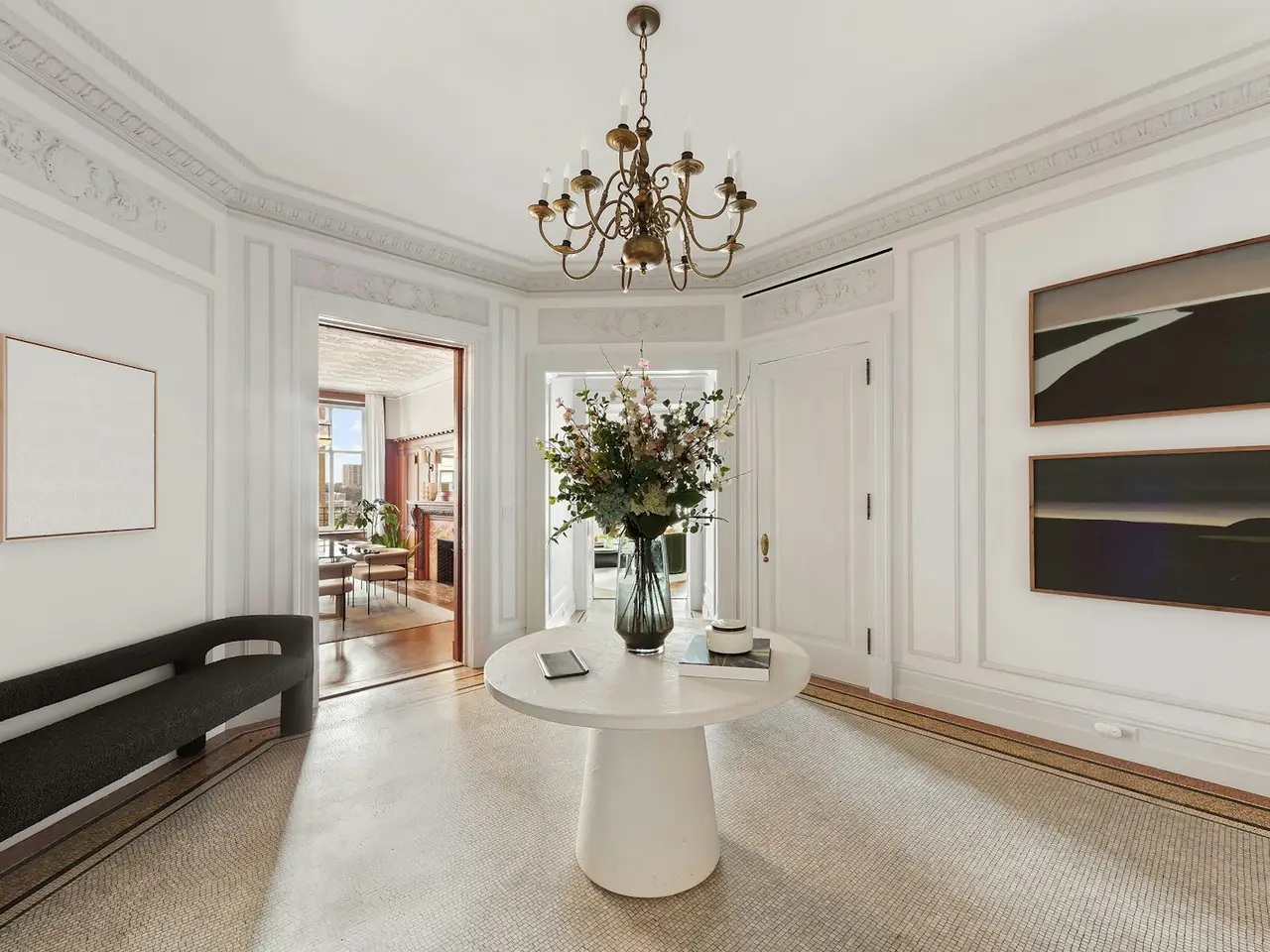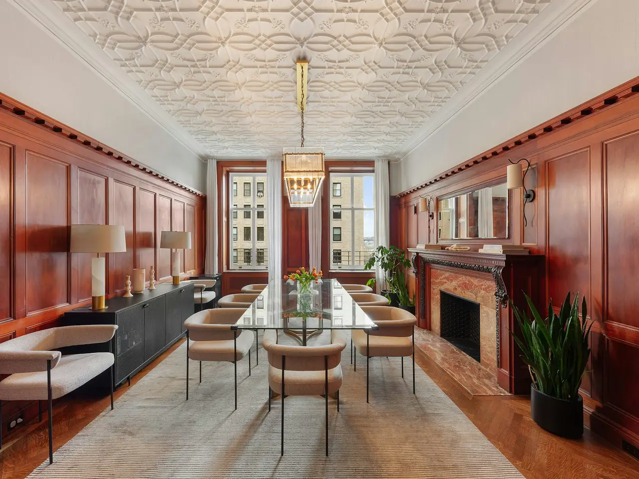 Introducing Apartment 5H at The Apthorp - an exquisite 4-bedroom, 3-bathroom residence located at one of Manhattan's most prestigious landmark. Expertly merging timeless pre-war elegance with contemporary refinement, this beautifully curated home offers 2,582 square feet of sophisticated living space illuminated by natural light from west and north exposures. Enter into your expansive terrazzo-tiled gallery that immediately highlights the exceptional craftsmanship characteristic of The Apthorp. Majestic ceilings, intricate crown moldings, solid oak hardwood floors, and elegant fireplaces adorn generously proportioned rooms, thoughtfully designed to elevate the residents' living experience. The impressive corner living room provides serene views of West End Avenue and the tranquil boat life of the Hudson River. Also, featuring a decorative fireplace and seamlessly transitioning to a formal wood paneled dining room facing west with restored plaster ceiling from yesterday years. This dining room boasts original wood paneling, intricate plaster ceilings, and a second decorative fireplace accented by marble and an artistic wooden mantel. Restored original pocket doors elegantly link these spaces, enhancing the home's fluid layout and sophisticated ambiance. The spacious, fully renovated kitchen, designed for culinary enthusiasts, offers sleek tile work, ample cabinetry, premium finishes, a large window overlooking the city, and high-end appliances from Wolf and Sub-Zero. Adjacent to the kitchen are two versatile rooms, ideally suited as an office, nursery, or guest bedroom, featuring built-in bookshelves. Located in its own private wing, the primary suite boasts oversized massive windows with tranquil northern views, a spacious walk-in closet, and a luxurious en-suite marble bath with a walk-in shower. Adjacent to this suite, a second generously proportioned bedroom provides two ample closet spaces, plenty natural light and refined comfort. Modern amenities such as an side-by-side oversized washer/dryer and updated heating and cooling central air systems blend seamlessly with the home's historic charm. Constructed between 1906-1908 for William Waldorf Astor, The Apthorp exemplifies Italian Renaissance Revival architecture, occupying an entire city block and recognized as a National Historic Landmark. Residents are welcomed through iconic iron gates into a beautifully landscaped central courtyard, a peaceful retreat in the heart of the city. Exclusive amenities include a recently renovated 6,500-square-foot wellness suite with a private spa, fitness center, yoga studio, steam room, sauna, entertainment lounge with bar and kitchen, children's playroom, and on-site parking. Multiple attended entrances, a dedicated building manager, and concierge services ensure exceptional convenience and care. Perfectly positioned just steps from Riverside Park, Central Park, and renowned cultural attractions such as the American Museum of Natural History, Apartment 5H at The Apthorp provides an unmatched lifestyle surrounded by vibrant dining, shopping, and leisure opportunities on Manhattan's iconic Upper West Side.