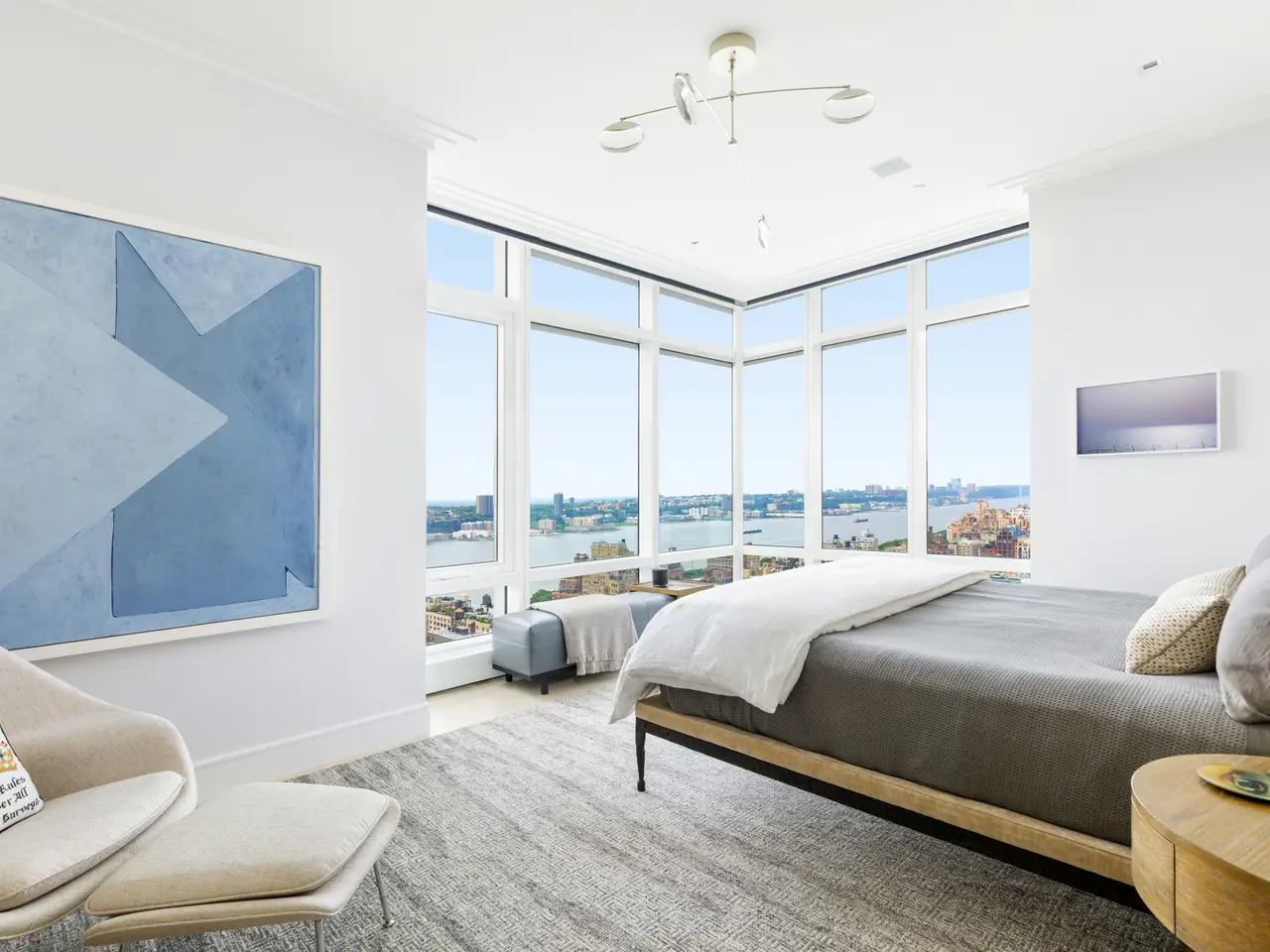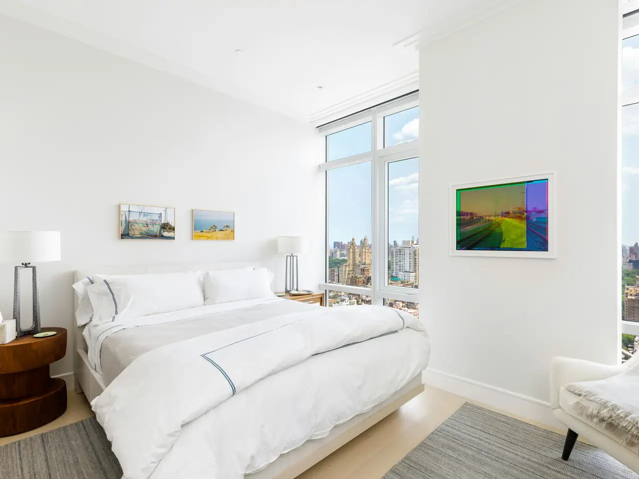 First RESALE of the BEST high floor 3-bedroom residence. A grand space with breathtaking Central Park, Hudson River, open City views with custom designer upgrades throughout! Enter this nearly 2,700 square foot, exquisite residence via a semi-private landing shared with only one other apartment on the floor. An elegant entry gallery sets the tone for this stunning home, with soaring 10 foot ceilings, 3 gigantic exposures, an enormous and show-stopping living space and 3 bedrooms and 3.5 bathrooms. Upon entering the corner living and dining room, stunning North and Eastern light and Central Park views from floor-to-ceiling glass windows will take your breath away! Conveniently open to the dining area is the fabulous chef's eat-in kitchen, complete with an impressive Calacatta island, and custom white oak cabinetry with satin nickel hardware. Top-of-the-line appliances include 2 Miele dishwashers, a Sub-Zero refrigerator, freezer and wine cooler, an 8-burner Wolf stove, a Miele speed oven, a warming drawer, and a fabulous marble, vented hood. Situated on the North West corner of the home is the luxurious primary bedroom suite, overlooking the Hudson River, with a custom outfitted walk-in closet, two supplemental closets, and a spa-like primary bathroom. The windowed primary bathroom is a true tranquil sanctuary, featuring radiant heated flooring made of white Iceberg marble, a lacquered vanity with double sinks, a deep soaking tub, a rain shower with a marble bench, a separate water closet, and polished nickel sink and bathroom finishes by Fantini. There are two additional spacious and well-proportioned bedrooms, each offering an en-suite bathroom and custom fitted and generous closet space. One bedroom enjoys Hudson River views, while the other has equally special views of Central Park. Completing this spectacular home is a glamorous jewel box powder room featuring a custom mirror and Pearl and Saint Laurent marble custom mosaic floors. The home also includes a separate laundry room with a vented washer/dryer and a sink, a state of the art smart-home system, and multiple zones of central air conditioning. Additional fabulous upgrades made by the owners include custom built-out closets throughout, installation of ceiling molding and new baseboards, stunning designer light fixtures, Lutron lighting system, electronic shades in all rooms (with blackout in the bedrooms), Sonos music system speakers in the primary bedroom suite and living room (surround sound with subwoofer), and an integrated living room TV sound system. Two bike storage licenses are offered with the sale. Please note that there is a working capital contribution equal to one month's common charges payable by the buyer. 200 Amsterdam is an iconic new condominium designed by Elkus Manfredi and CetraRuddy, perfectly positioned in Lincoln Square, just moments from Lincoln Center, world-class dining, and luxury shopping. It features 3 floors of indoor and outdoor amenities, including a resort level Spa featuring a 75" saltwater pool, rejuvenation rooms with steam and sauna, treatment rooms, a top-of-the-line fitness center curated by The Write Fit with yoga and pilates studios, a golf simulator, "The Club" with a landscaped terrace, lounge and dining room, billiards table, library with grand piano, teleconference rooms, soundproofed Rehearsal Room, and a children's playroom featuring a performance stage. 200 Amsterdam's level of service is unmatched featuring a 24-hour doorman and concierge, lifestyle management services provided by LIVunLtd, and a live-in resident manager.