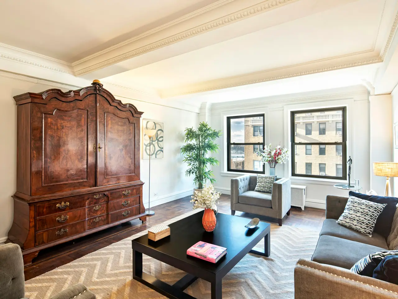 GIGANTIC. Measured at 2,300 square feet and a peek of the river. Your canvas awaits. This rarely available, over-scaled home has the grandeur and square footage more typically found in 7 to 8 room home. Boasting six super large rooms, this home has 2-3 bedrooms plus a staff room/office, a huge kitchen, oversized formal dining room, regal living room and grand formal gallery. A foyer leads to the large gallery which connects to the oversized living room facing West onto West End Avenue and to the large dining room facing East. There is also a windowed kitchen with ample prep space and lots of storage. The primary suite faces over West End Avenue and is super large with plenty of room for a king sized bed, sitting area, walk-in closets and a home office/dressing area! The large an en-suite window bathroom has both a tub and a separate shower. The generously proportioned second bedroom is serviced by a hall windowed bathroom. A staff room could be another bedroom or added to the kitchen. 670 West End Avenue is a very well established and well run prewar cooperative with low maintenance, 24 hour doormen, live-in superintendent, storage (as available), a bike room, playroom, pet friendly and a beautiful and tranquil planted roof deck. 75% Financing Allowed.