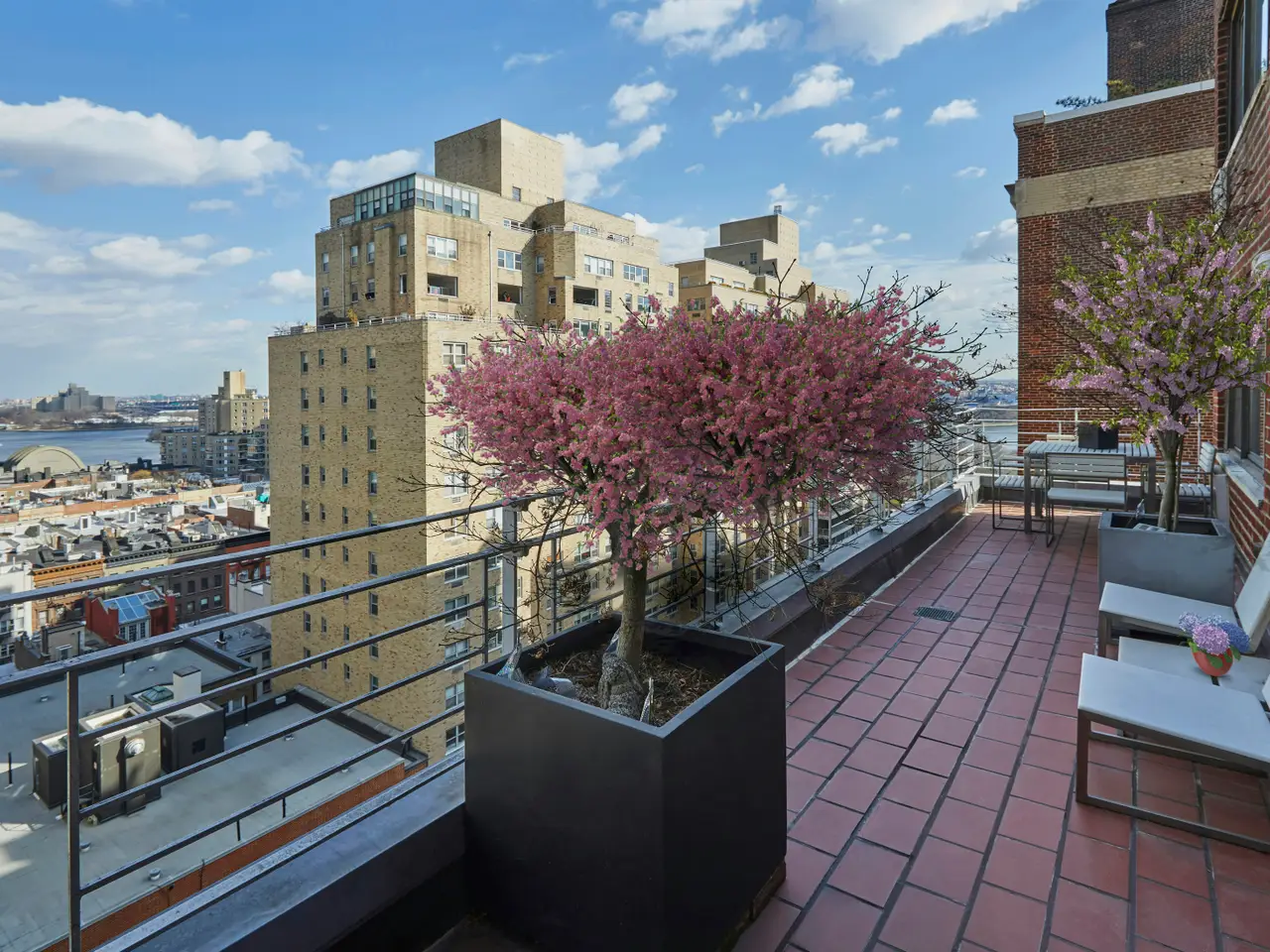 An Indoor and Outdoor Oasis!! Perfectly situated on Manhattan's 86th street corridor - welcome to this sprawling 4 bedroom, 4 bath, 2 half bath home. This high floor, Postwar Cooperative offers both gracious living and grand entertaining indoors and out! Architecturally distinctive, the dramatic entry gallery features two floating concrete walls, each displaying artwork in an almost "gallery-like" setting. From there you enter the double size Formal Dining Room. This space is large enough for 2 square tables seating 8 at each, or a long harvest-like table, where 14+ can dine. From this room, the exposure is Northeast and includes 6 windows of open city and East River views. The room feels almost loft-like until you close the 3 sets of fluted glass pocket doors - turning the room into a warm intimate space. A grand scale Living Room is parallel to the Dining Room. It too enjoys 6 windows of open city and East River views! This room opens to the main Northeast facing terrace (30 X 6 ft.), which is a perfect extension of the Living Room. A mirrored wet bar and a half bath complete the Living Room. Adjacent to the Living Room is the 4th Bedroom/Office with an en-suite full bath and a cedar closet just outside. This room currently functions as an office with custom designed wood cabinetry including extensive storage, shelving and a built-in desk. The exposure is South with open city views. It is important to note that lighting and storage space play a significant role in the entire apartment. Throughout the apartment there are walk-in closets, dressing rooms and hidden storage in every room. In both the Dining Room and Living Room, there is extensive spot lighting to frame artwork and sculptures. Two additional rooms complete the North side of the apartment. The Kitchen: a stunning stainless steel chef's eat-in Kitchen features a Subzero Fridge with 2 freezer drawers, a Miele microwave drawer, a 5 burner cooktop - which vents out, double wall ovens and a Bosch dishwasher. Additionally, a small portion of the 2nd terrace has been "green-housed" and added to the Kitchen as a charming breakfast room. A very large pantry room - accessed from the kitchen, houses a stacked Miele Washer/Dryer (which vents out), a 2nd sink and an additional Subzero Fridge & Freezer and of course - storage. Den: This spacious open room serves as a media center with a large wall mounted flat screen television and 2 generous seating areas. It looks onto the 2nd terrace and enjoys 6 windows of open city views. The South facing wing of this home feature 3 bedrooms. The 1st - has an en-suite full bath, a large closet and 2 built-in closets. This bedroom includes a small terrace which has been fully enclosed and added to the bedroom itself. The 2nd has its own full bath located just outside the bedroom and includes a side by side double closet, 2 smaller built-in closets and a Murphy bed. The Primary Bedroom has a full bath, as well as a separate bath area with a stand-alone sink, vanity and Jacuzzi tub. There is also a custom built media and storage unit. This bedroom has 7 closets, including a huge walk-in. The 3rd terrace (34 X 3.5) which features open city views and faces South, is accessed from this bedroom. Apt. 17C features thru-wall heat and air conditioning in all rooms. Please note: a storage unit transfers with the sale. 510 East 86th is a full service Cooperative, minutes from Carl Schurz Park, with sweeping water views, jogging and cycling paths, dog runs and basketball courts as well as The East River Promenade. There is a bike room, common storage area & central laundry. Pets are welcome, too. Excellent restaurants, shops and convenient transportation make this the perfect apartment to call home.