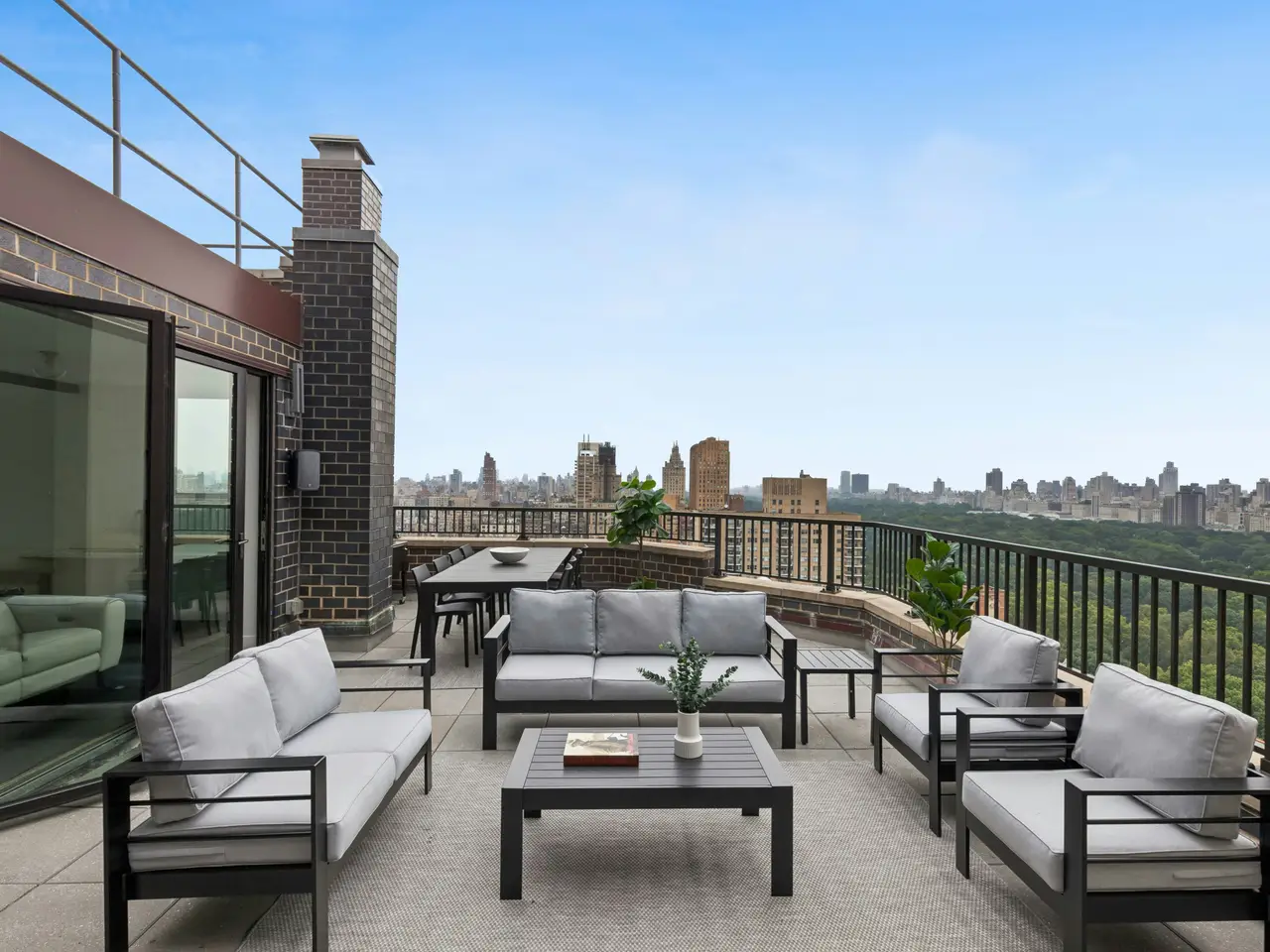 Luxury Sky Penthouse Overlooking Sheep MeadowWelcome to this gut-renovated sky penthouse occupying the top two floors of The Europa, a one-of-a-kind 4-bedroom, 4-bathroom duplex condo graced with prime Central Park views, three balconies, and an expansive private rooftop terrace. Natural light spills through oversized windows from sunrise to sunset. Smart home technology includes Sonos speaker integration, a Ring security system, Nest thermostats, Legrand Adorne smart lighting, and Cat6 wiring throughout. Additional features include custom closets, vented washer/dryer, floating stairs, and designer light fixtures. Past a private elevator landing, the lower level of the home begins with an elegant entry gallery adorned with a coat closet and powder room. The gallery flows into a massive great room with a park-facing balcony and a 7-ft look-through gas-burning fireplace with a stone surround. The custom Leicht kitchen is equipped with a huge eat-in island, sleek Silestone countertops, a PITT countertop burner, and a suite of fully integrated appliances from Sub-Zero, Wolf, and Miele. The lower level also has a cozy den and three bedrooms. Two of the bedrooms have full en-suite bathrooms, and one of them has an attached Central Park and west side facing balcony. A tranquil primary suite occupies the upper level of the home. It has two walls of custom closets, park views, a balcony, a sunroom with a folding NanaWall, and a skylit en-suite bathroom with custom double vanities, an enclosed Toto toilet, a two-person walk-in rain shower, and a two-person freestanding soaking tub. The sunroom leads out onto a stunning terrace with multiple lounge areas and picturesque views of Central Park and the city skyline. The Europa is a full-service condominium nestled just off Central Park in prime Lincoln Square. It is moments from restaurants, bars, cafes, and shops, and it is close to Lincoln Center and Columbus Circle. Nearby attractions within Central Park include Tavern on the Green, Sheep Meadow, and The Mall. Accessible subway lines include the 1/A/C/B/D. Pets are welcome. TENANT OCCUPIED, 48 hours notice needed for showing requests.