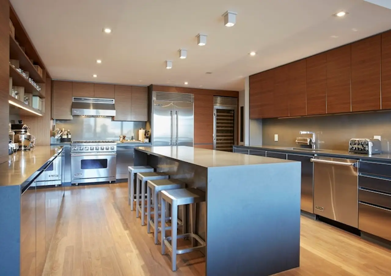 Walnut and stainless kitchen cabinetry