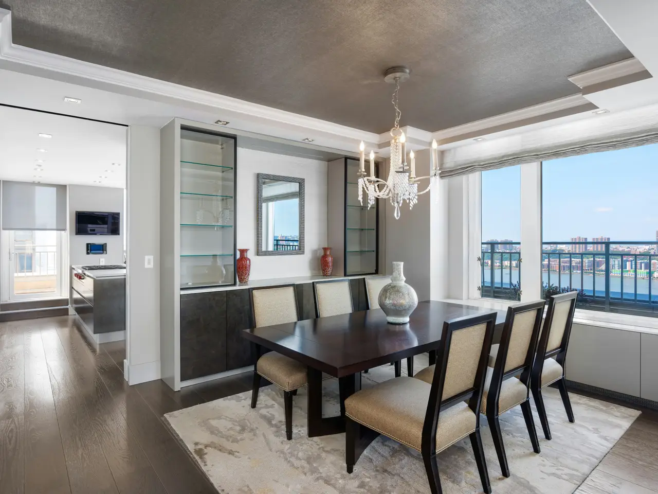 A rare find- NEWLY renovated, two corners with views and outdoor space off the right rooms!! This beautiful, triple mint 4 bedroom home has everything - a great layout, stunning views, a fabulous renovation, and a wrap-around terrace! Boasting nearly 3000 square feet inside with a grand living and entertaining space as well as private areas, Apartment 29A is perfect. There are 4 true bedrooms, an enormous living room and formal dining room, and an amazing designer chef's kitchen with a River view! Enter into an elegant gallery with 3 closets and an appropriately placed stunning powder room. The grand living room with floor-to-ceiling windows is over 17 feet wide and 29 feet long, a truly dramatic room showcasing panoramic views of the Hudson River. The living room is next to the large formal dining room. The outstanding chef's kitchen is next to the dining room and has top-of-the-line appliances from Wolf, stone countertops, and custom cabinets. The living room and kitchen each have 2 entrances to the terrace! The primary bedroom faces South and has a gigantic walk-in closet/ dressing room and an en-suite spa-like bathroom with a soaking tub, double vanity, and a separate glass-enclosed shower. The second South facing bedroom is displayed as a den with a TV and built-ins. On the other side of the home, there are 2 North facing bedrooms. All bedrooms are generously sized, with plenty of natural light and closet space, and 2 new beautiful bathrooms service them. The apartment also features a laundry room with a full-size washer and dryer. The expansive terrace runs the entire breadth of the home with light all day and night and mesmerizing views of the River and the City skyline. Additional features of the home are state-of-the-art electric system controls, which manage and customize the lighting, temperature, and shades. The Lutron lighting offers a variety of settings, from bright to soft, all at the touch of a button. The apartment is also equipped with a Sonos sound system throughout the entire space. Please note, the approximate interior square footage is 2,962 and the approximate exterior square footage is 824. 220 Riverside Boulevard is a full-service luxury condominium with a 24-hour doorman and concierge, a state-of-the-art fitness center, a swimming pool, a children's playroom, and a resident lounge. The building is located on West 71st Street and River, across from Riverside Park, close to Lincoln Center, and some of the city's best dining and shopping destinations.