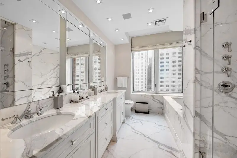PARK VIEWS FROM EVERY ROOM Experience refined luxury living in this exceptional two bedroom 2 1/2bath residence spanning 1928 sq ft with every room framing uninterrupted views of Central Park. Designed with elegance and comfort, the home showcases bespoke finishes throughout, pairing timeless sophistication with modern luxury and warmth. The gracious entrance foyer serves as a prelude to this turn key designer renovated home that has been photographed and published for its meticulous craftsmanship and design elements. The expansive layout offers an open flow between the living room and dining spaces while expansive windows bathe each room with natural south eastern light which highlights the park's ever changing beauty. The open chef's kitchen features a marble sculptural breakfast bar, custom cabinetry, marble countertops with Ann Sachs platinum backsplash along with Sub Zero and Miele appliances The corner primary bedroom suite is a true private luxurious retreat featuring ample closets and storage. The en suite windowed spa-like bathroom with double vanities includes Calcutta gold slab imported marble from Italy, Dornbracht fixtures, Kohler oversized cast iron bathtub, separate stall shower and heated radiant floors. The second bedroom, which is currently used as a den/study, includes ample closets and an en suite marble bathroom with custom cabinetry. The home is further enhanced by stunning hardwood floors, custom millwork, an elegant guest powder room, individual climate controls, a sophisticated lighting and sound system, and Miele washer and dryer The Park Laurel is one of Manhattan's premier condominiums. Residents enjoy a 24 hour doorman/concierge, fitness center, and bicycle room The prestigious location is only seconds away from Central Park, Lincoln Center, Time Warner Center, fabulous restaurants, shopping and public transportation. There is an assessment of $1604 per month