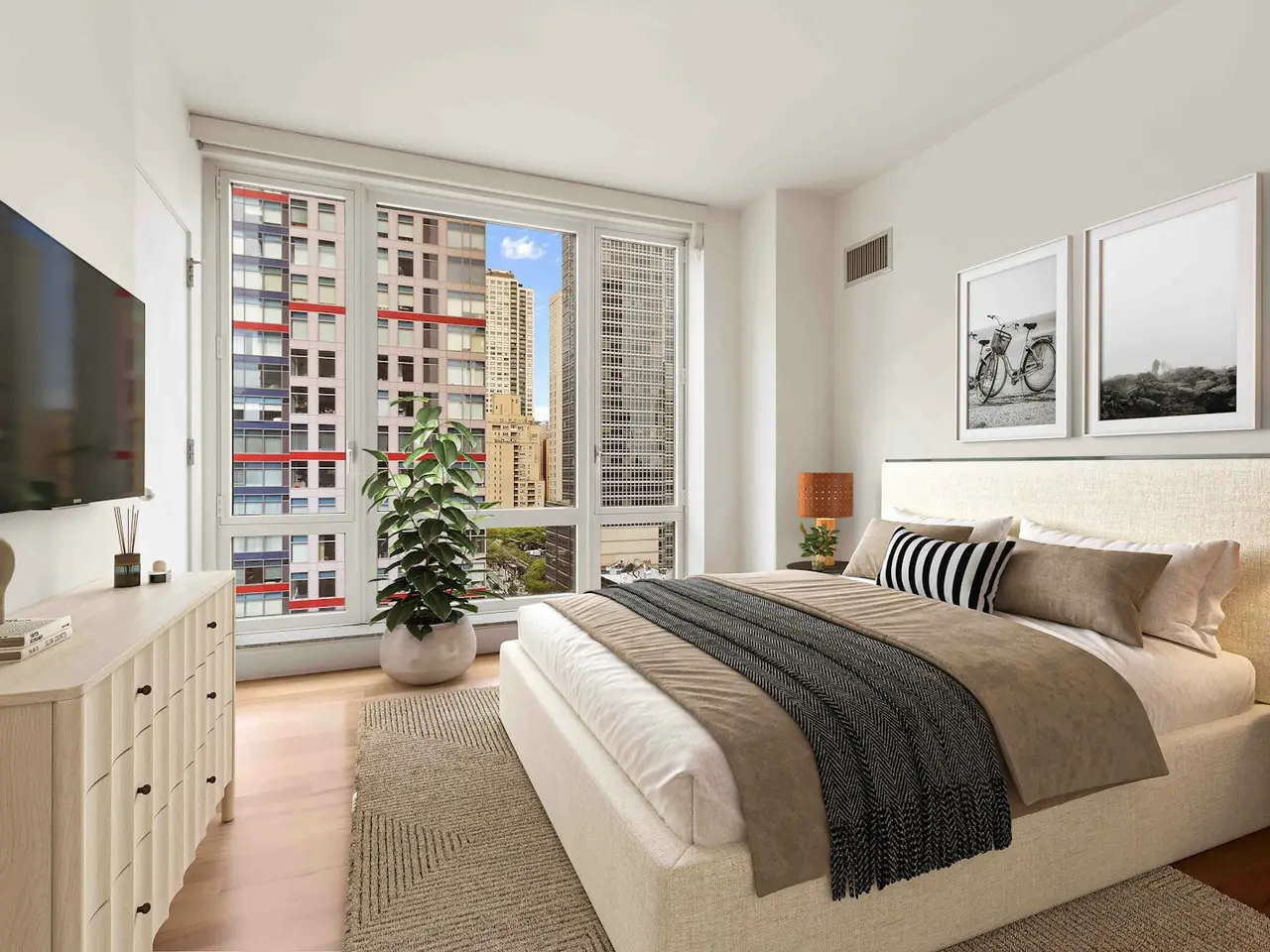 Floor to ceiling windows with Manhattan skyline views