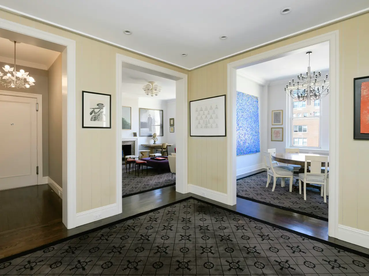 Perched high above Park Avenue at the apex of Carnegie Hill, this sophisticated 10 into 9 room prewar gem offers elegant living on the Upper East Side. This sun-drenched, 12th Floor corner residence offers soaring 10' 6" ceilings, gracious and glamorous living space, stunning original detail and open views in every direction. The large, square entry foyer leads to a beautifully proportioned living room with fireplace, ten-foot ceilings, oversized windows, stunning hardwood floors, and captivating western exposures overlooking the bell tower of Brick Church. The elegant dining room connects to a stunning corner library that boasts a sweeping double exposure with northern views up Park Avenue. A large gallery with custom bookcases and skylight leads to the oversized chef's kitchen, featuring high-end stainless-steel appliances, custom Bulthaup cabinetry, a separate pantry, a large center island, and a separate breakfast dining area with built-in banquette. The primary suite is a true retreat (originally 2 rooms) with a wall of windows plus sitting area, two full bathrooms on opposite sides of the room, a custom dressing area, two walk-in closets, and a marble bath with a shower and soaking tub. Three additional large bedrooms, two with ensuite baths and enormous closets, plus an additional guest bedroom/home office and hall bath complete the home. There is a separate laundry room with ample storage. Centrally air conditioned throughout. 1155 Park Avenue is a pet-friendly, full-service luxury cooperative building built in 1915 by Bing and Bing, with 24-hour doorman, live-in super, gym, bike room, and laundry room. 40% financing. 2.5% flip tax. Co-exclusive.