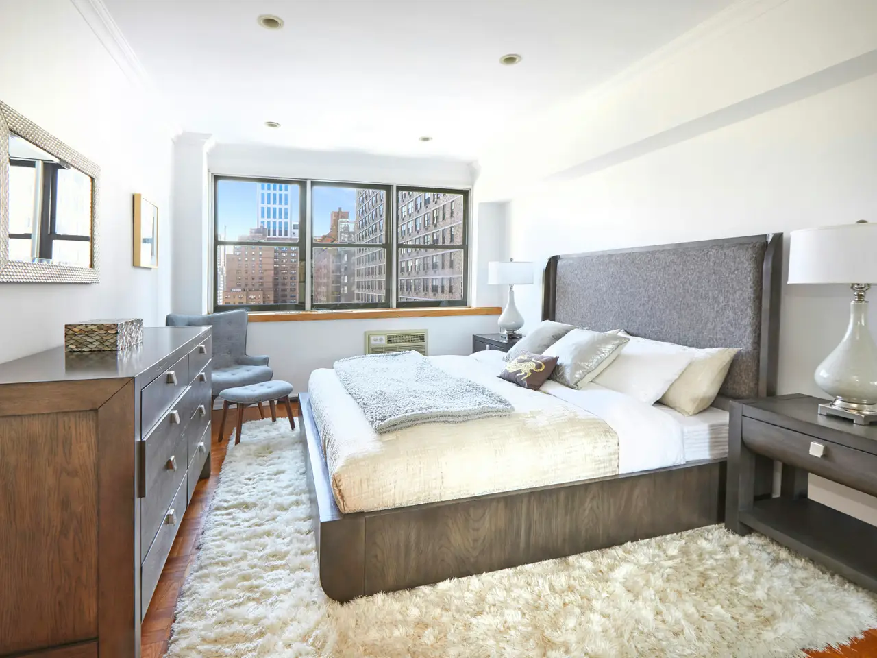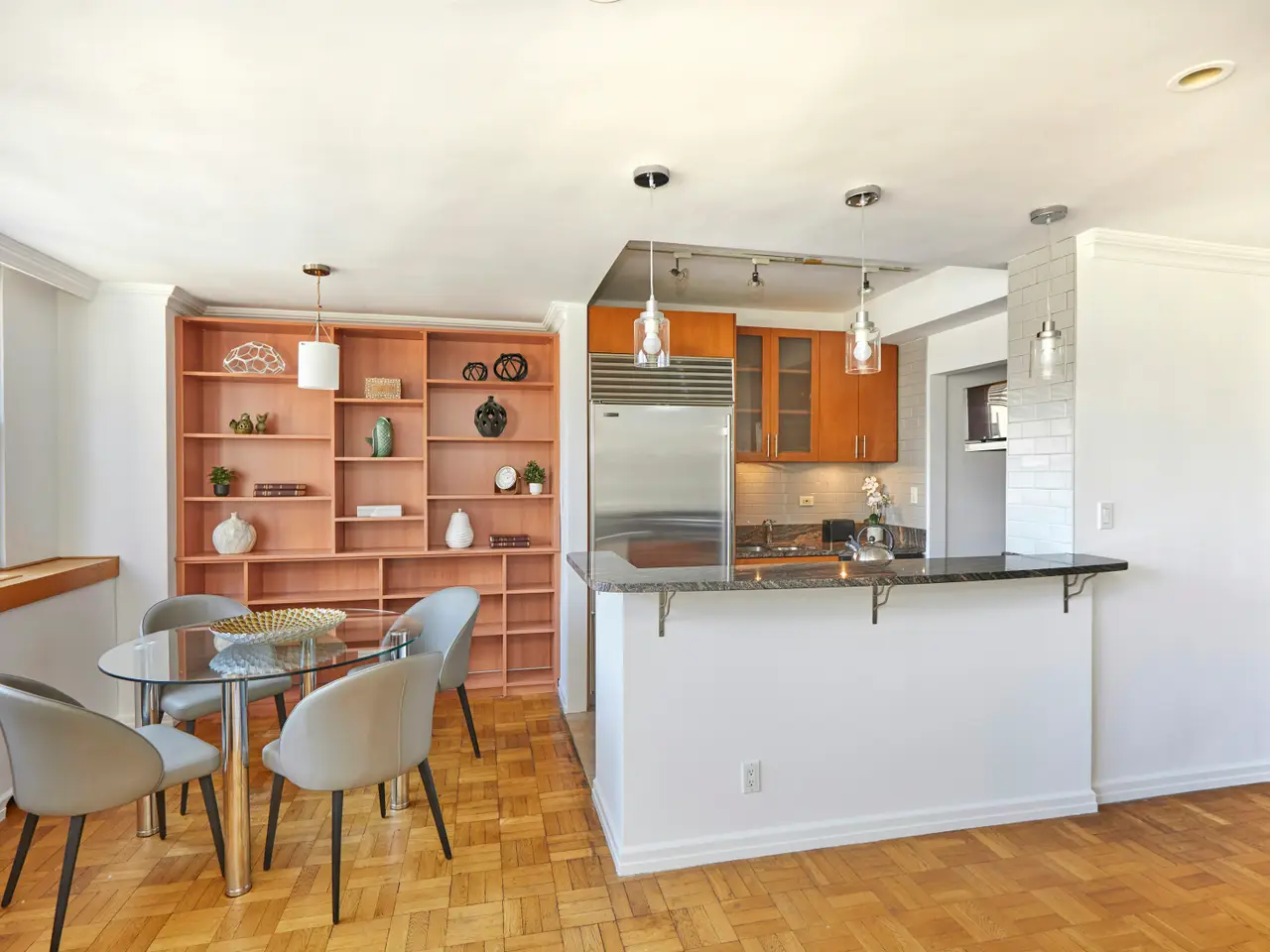 New to the market - A high-floor two-bedroom, two-bathroom home in move-in condition with a low monthly maintenance of only $2,081. The generous foyer has a coat closet and leads to the spacious living room bathed in sunlight through a wall of windows. There are custom built-ins, crown molding, and recessed lighting throughout. The open kitchen features stainless steel appliances, wood cabinets, glass tile backsplash, and marble countertops. A hallway leads to the large primary bedroom with a renovated en-suite bath. The second bedroom has an equally lovely bathroom accessed off the hallway. This home has higher ceilings than most in the building. Other amenities include through-the-wall air-conditioning, washer/dryer, and custom closets in every room. Currently, there is a low assessment of $100 per month. 239 East 79th Street is an extremely well-run cooperative with excellent financials. The halls and lobby have been recently renovated, and there is a beautifully landscaped roof deck. The building has a live-in super, 24-hour doorman, and garage. Pets are welcome.